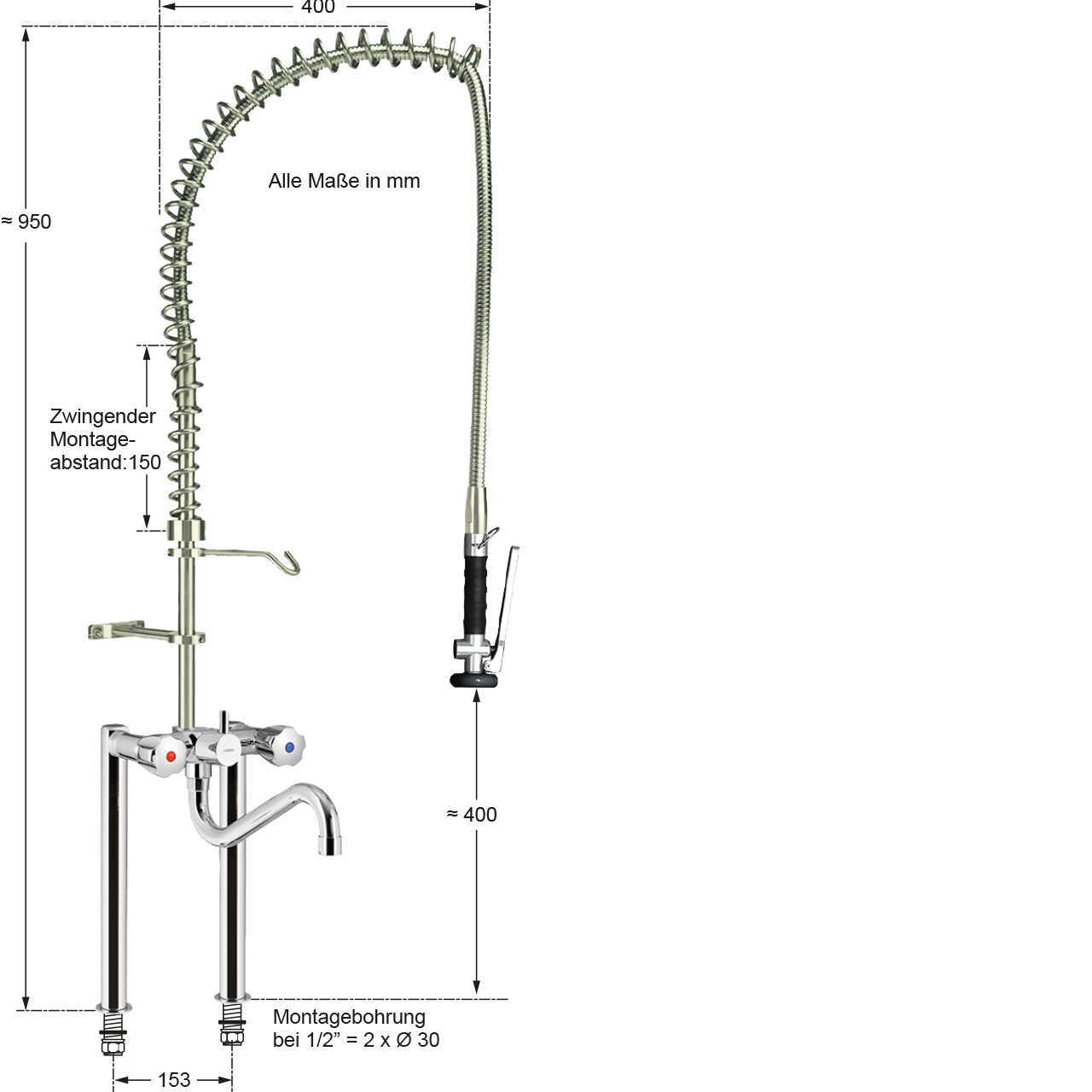 Montagebohrung: Abstand 153 mm - 2x Ø 30 mm