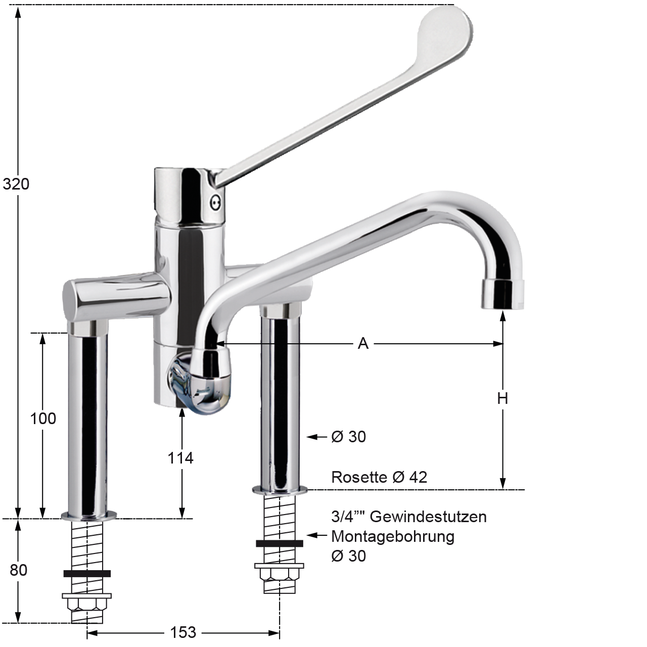 | Montagebohrung: | Abstand 153 mm - 2x Ø 30 mm |