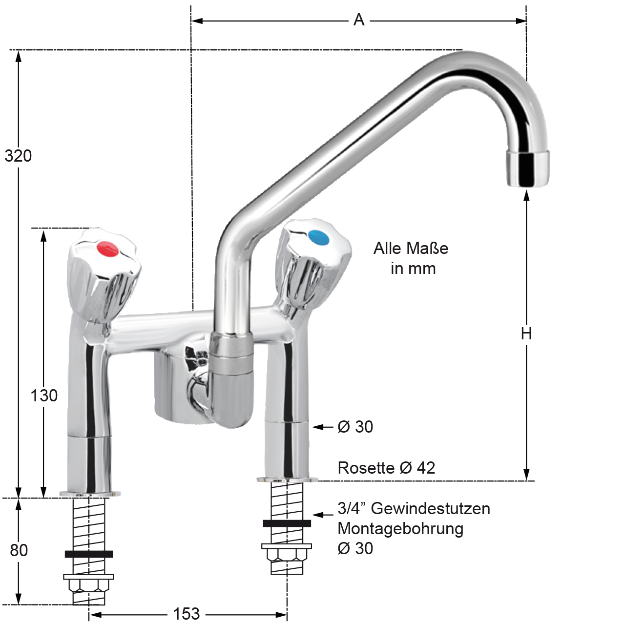 | Montagebohrung: | Abstand 153 mm - 2x Ø 30 mm |
