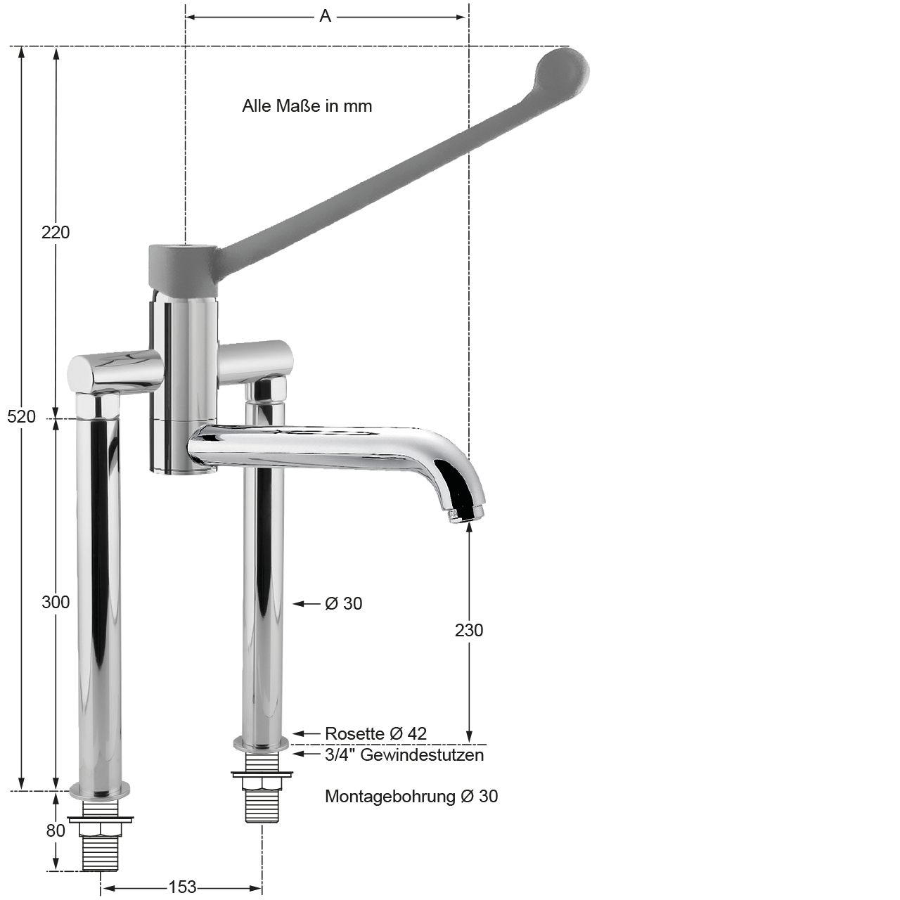 | Montagebohrung: | Abstand 153 mm - 2x Ø 30 mm |
