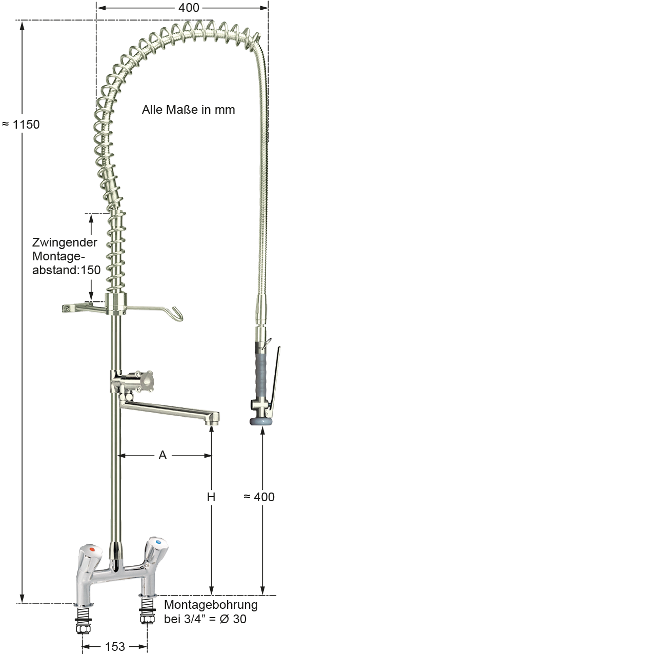 | Montagebohrung: | Abstand 153 mm - 2x Ø 30 mm |