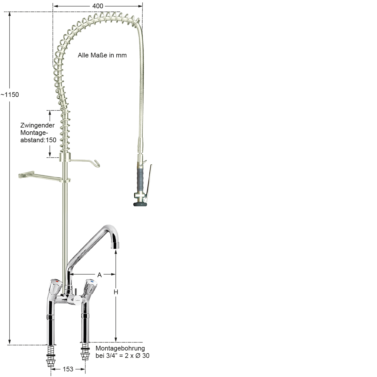| Montagebohrung: | Abstand 153 mm - 2x Ø 30 mm |