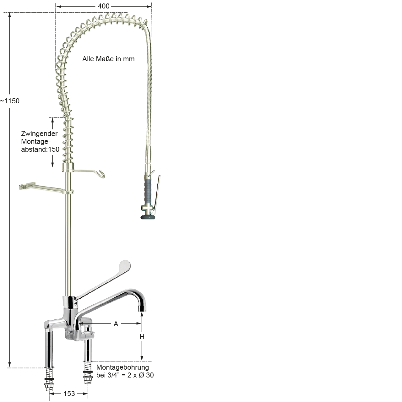 | Montagebohrung: | Abstand 153 mm - 2x Ø 30 mm |