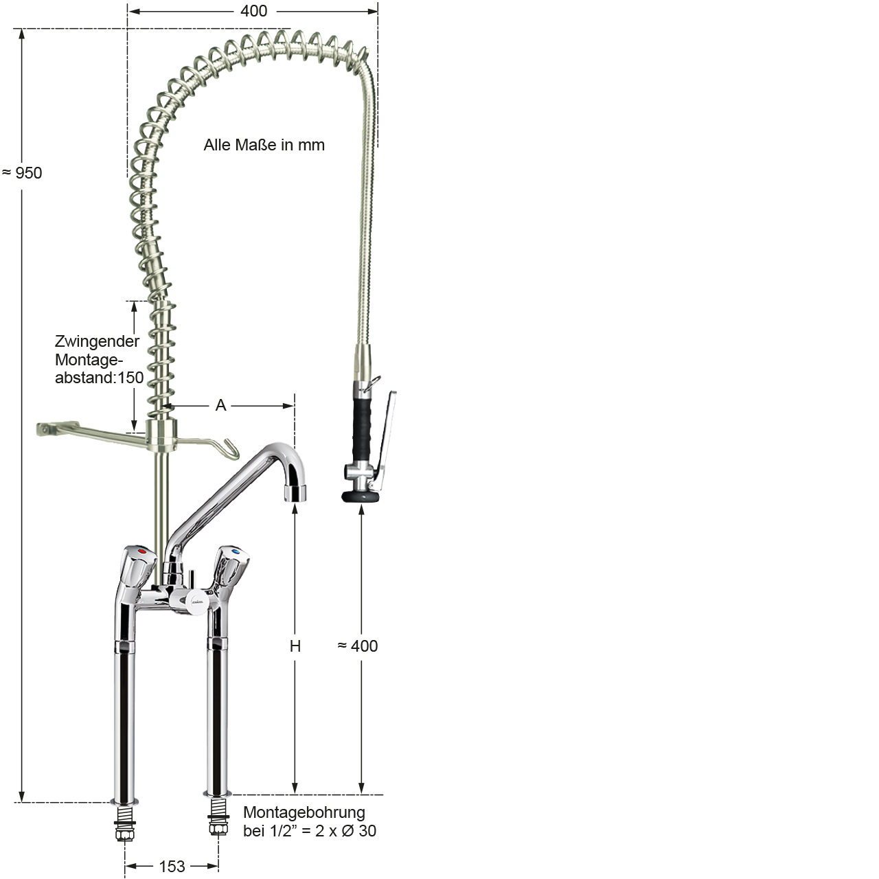 Montagebohrung: Abstand 153 mm - 2x Ø 30 mm