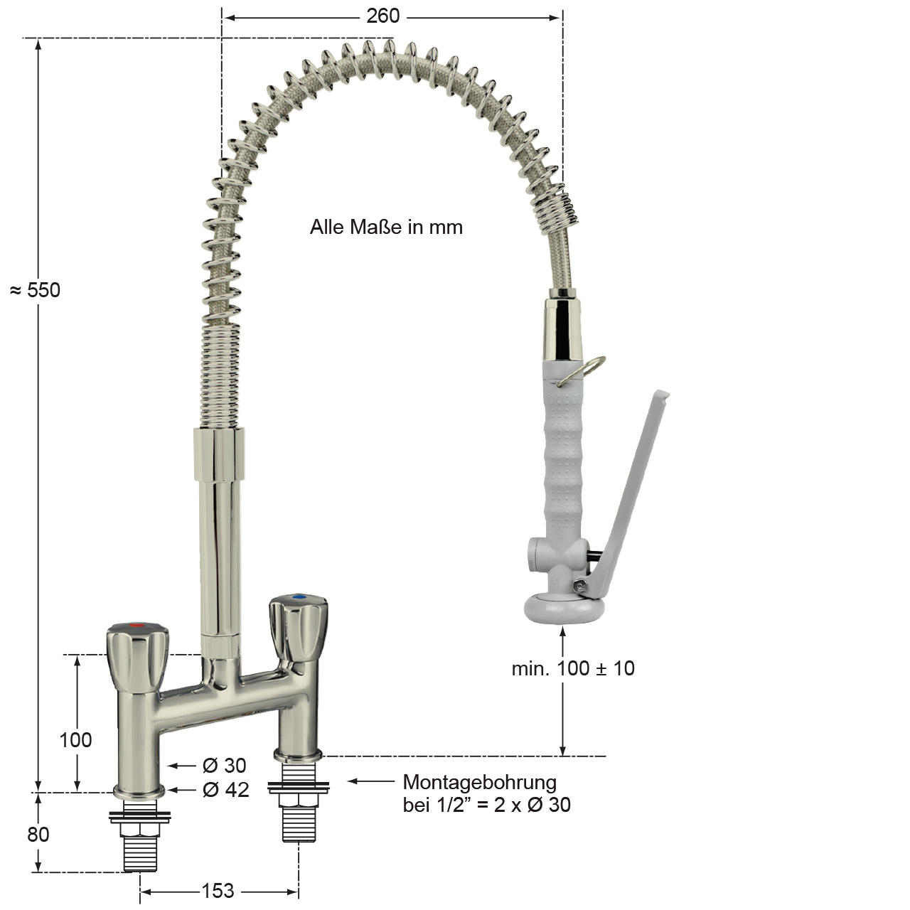 | Montagebohrung: | Abstand 153 mm - 2x Ø 30 mm |