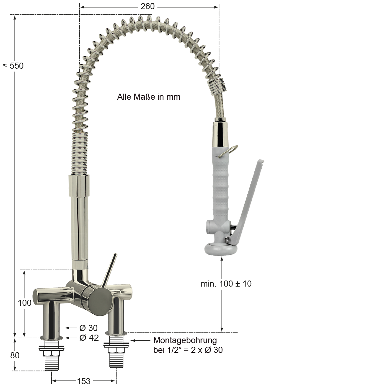 | Montagebohrung: | Abstand 153 mm - 2x Ø 30 mm |