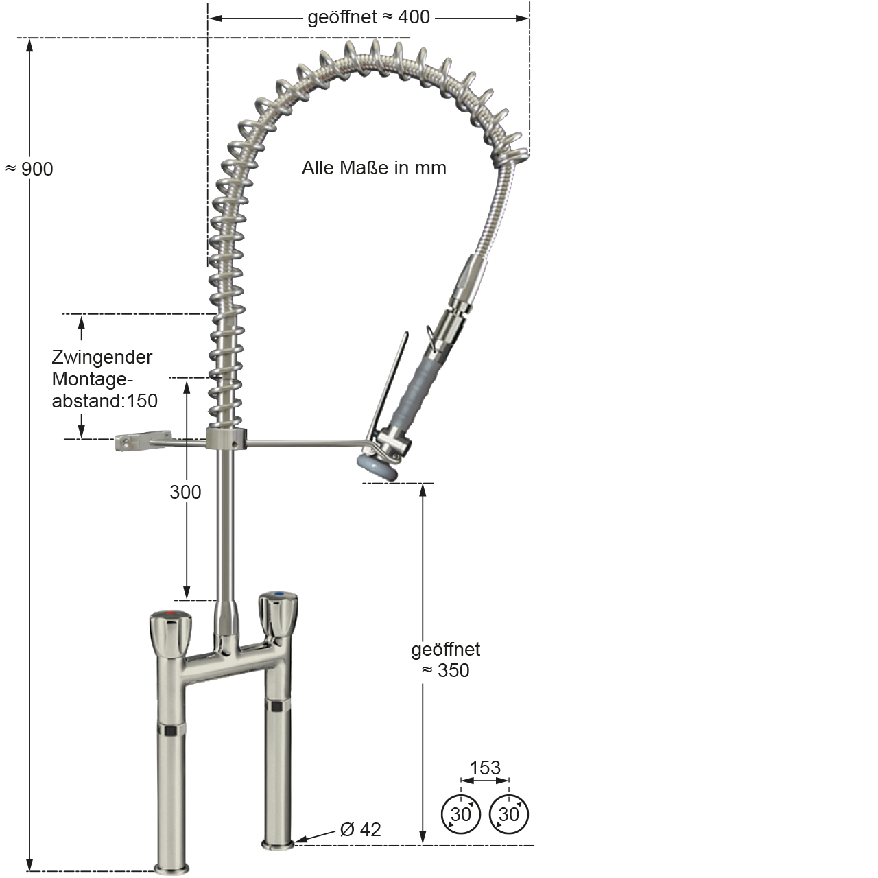 | Montagebohrung: | Abstand 153 mm - 2x Ø 30 mm |