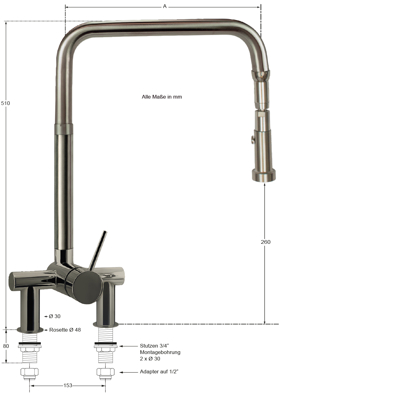 Montagebohrung: Abstand 153 mm - 2x Ø 30 mm