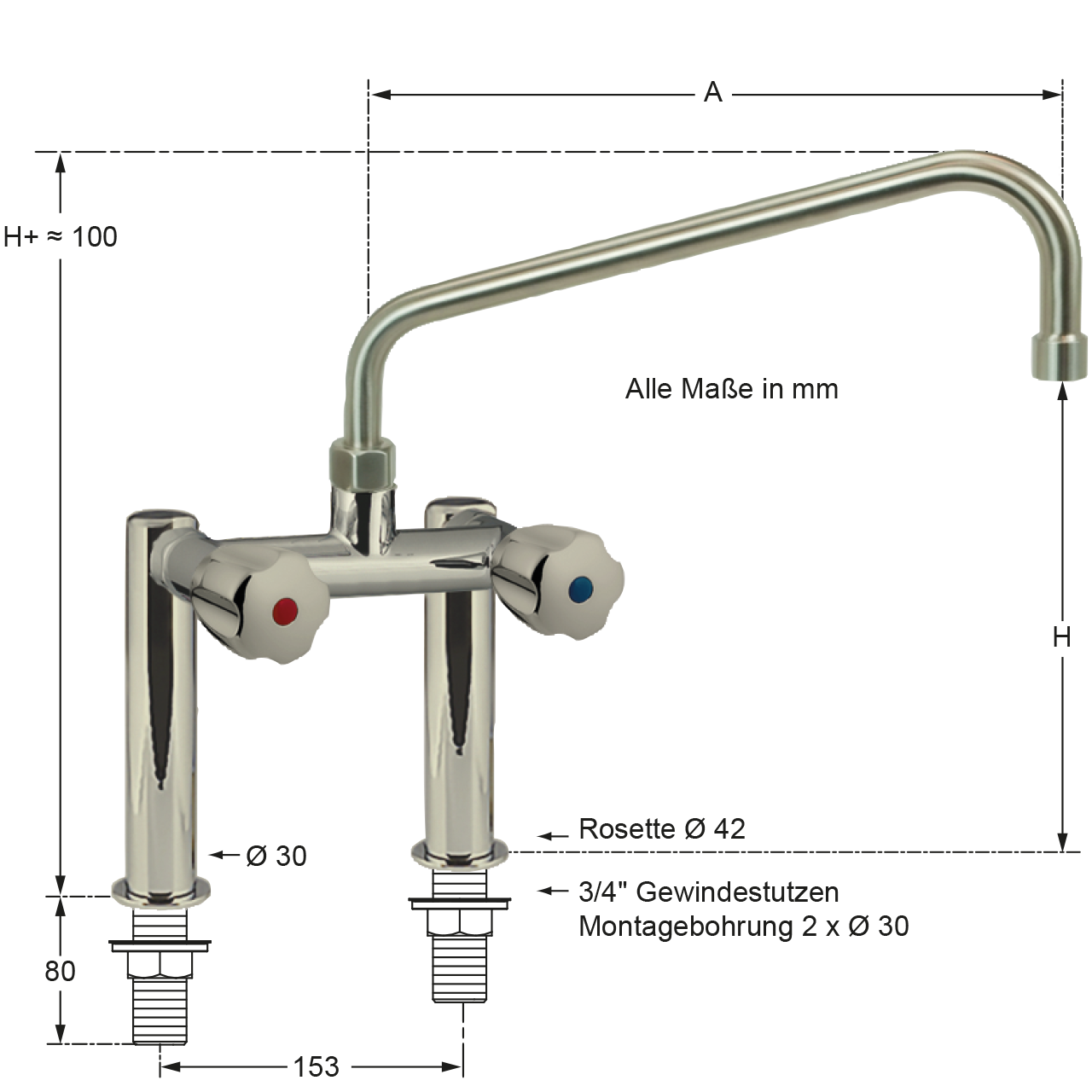 Montagebohrung: Abstand 153 mm - 2x Ø 30 mm
