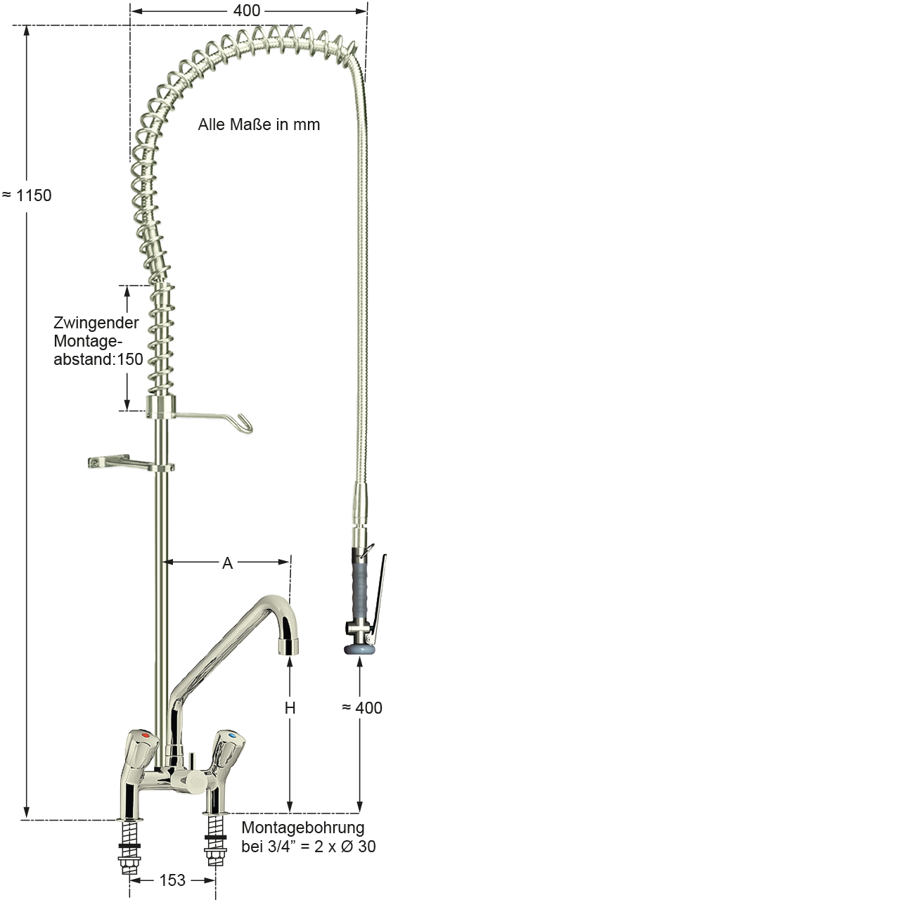 | Montagebohrung: | Abstand 153 mm - 2x Ø 30 mm |