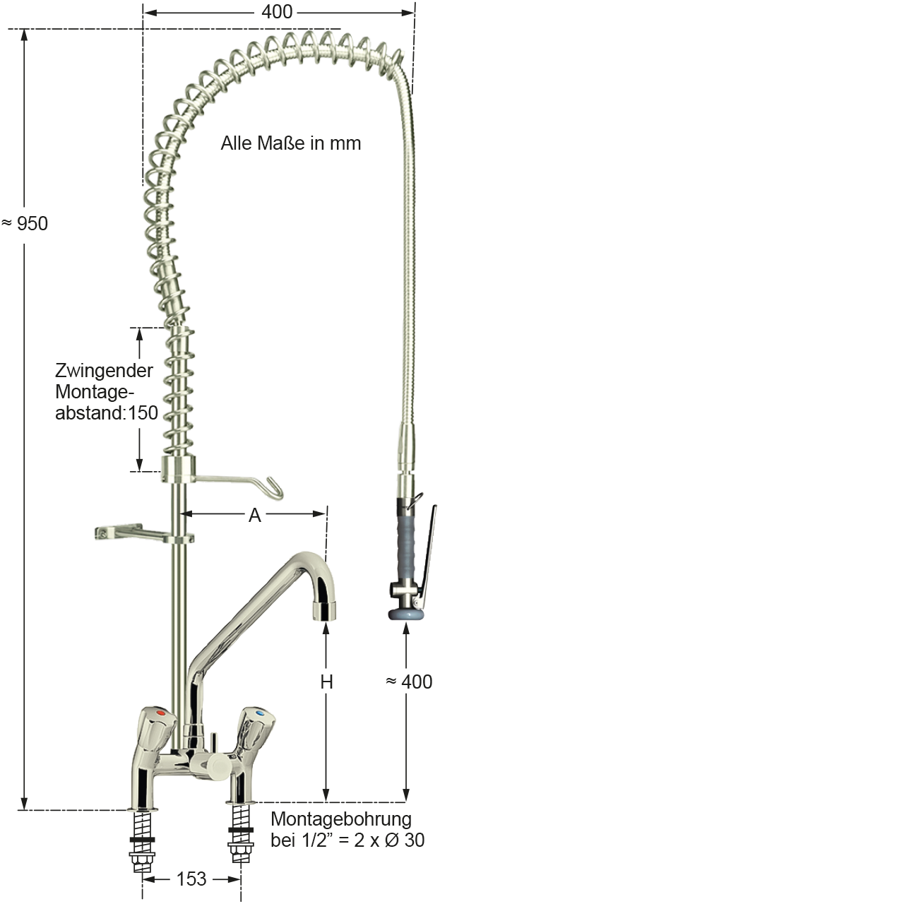 | Montagebohrung: | Abstand 153 mm - 2x Ø 30 mm |
