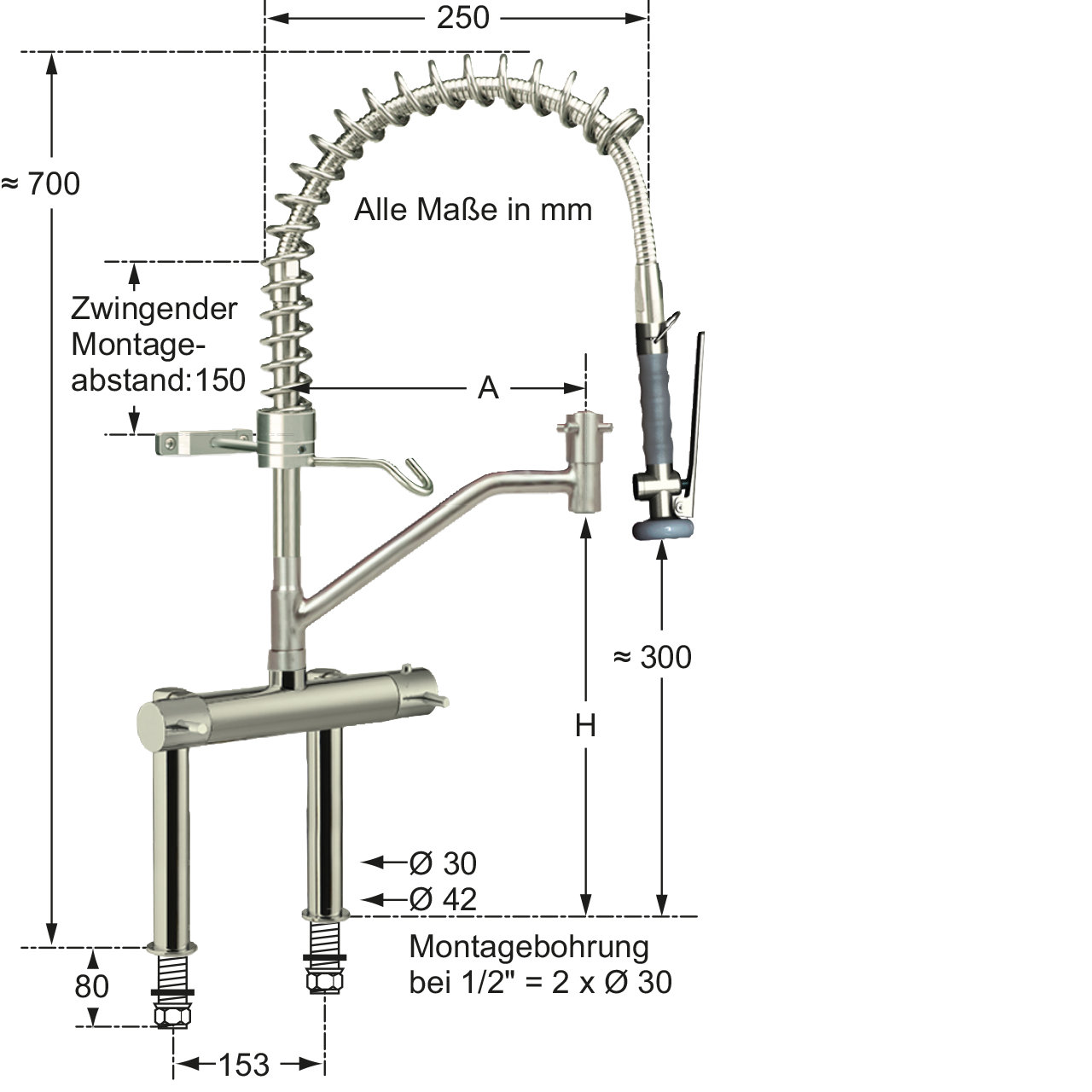 Montagebohrung: Abstand 153 mm - 2x Ø 30 mm