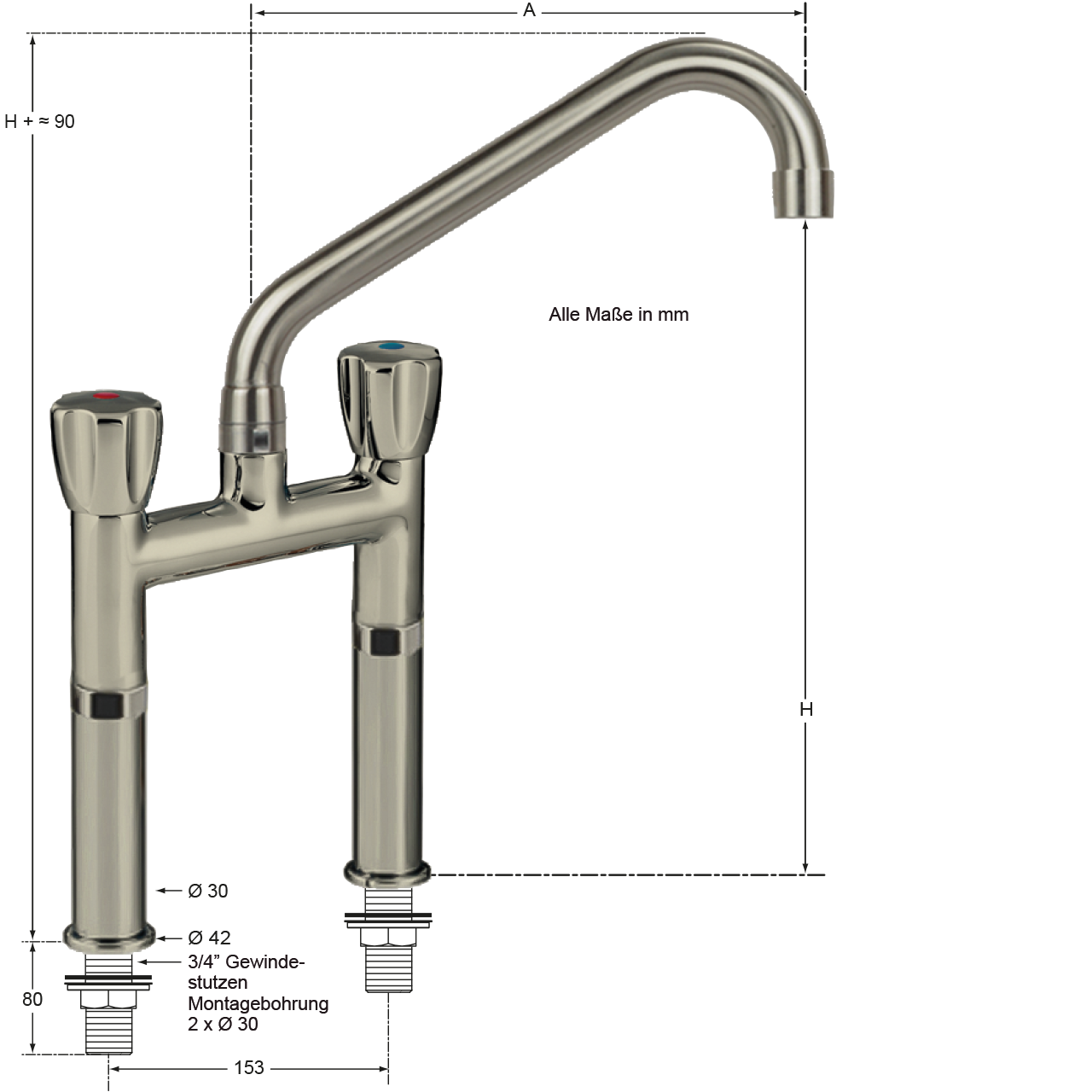 | Montagebohrung: | Abstand 153 mm - 2x Ø 30 mm |