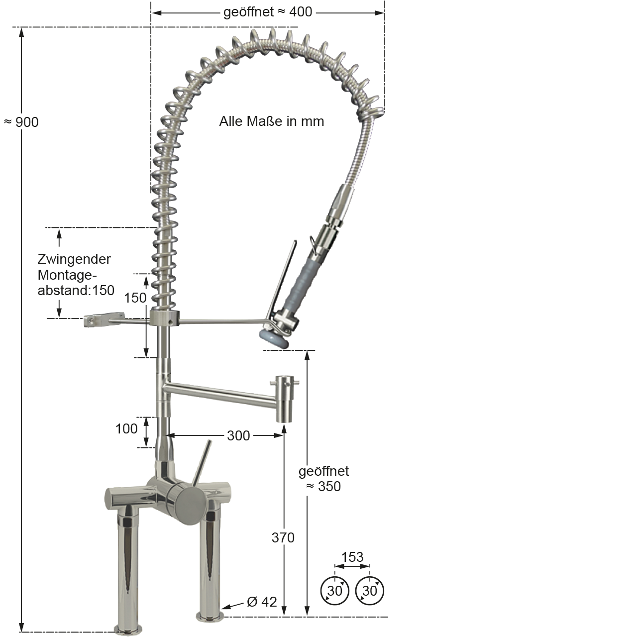 | Montagebohrung: | Abstand 153 mm - 2x Ø 30 mm |