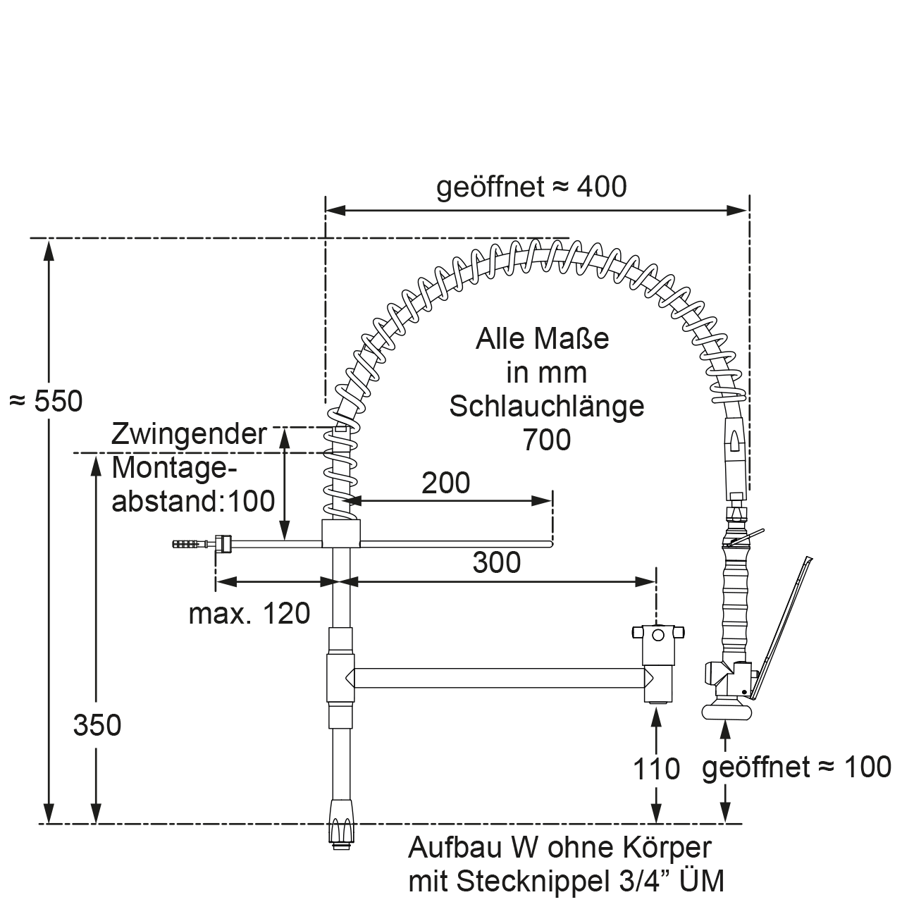 - rückschlagfreie Selbstschlussbrause mit Handgriff
