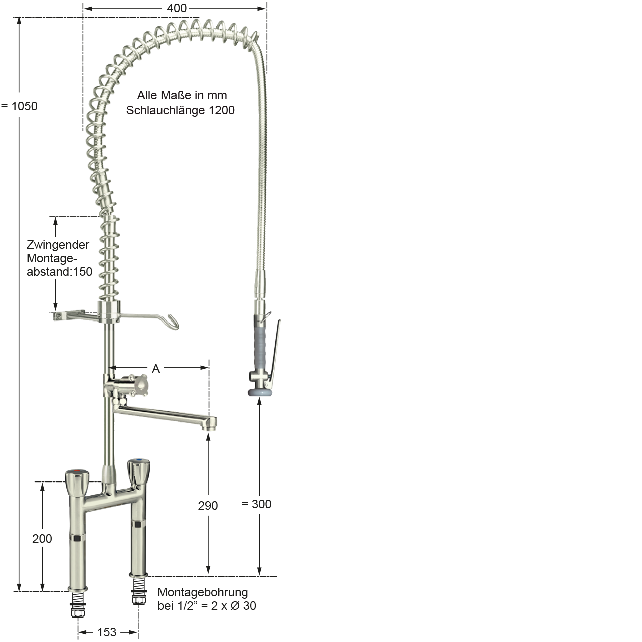 | Montagebohrung: | Abstand 153 mm - 2x Ø 30 mm |