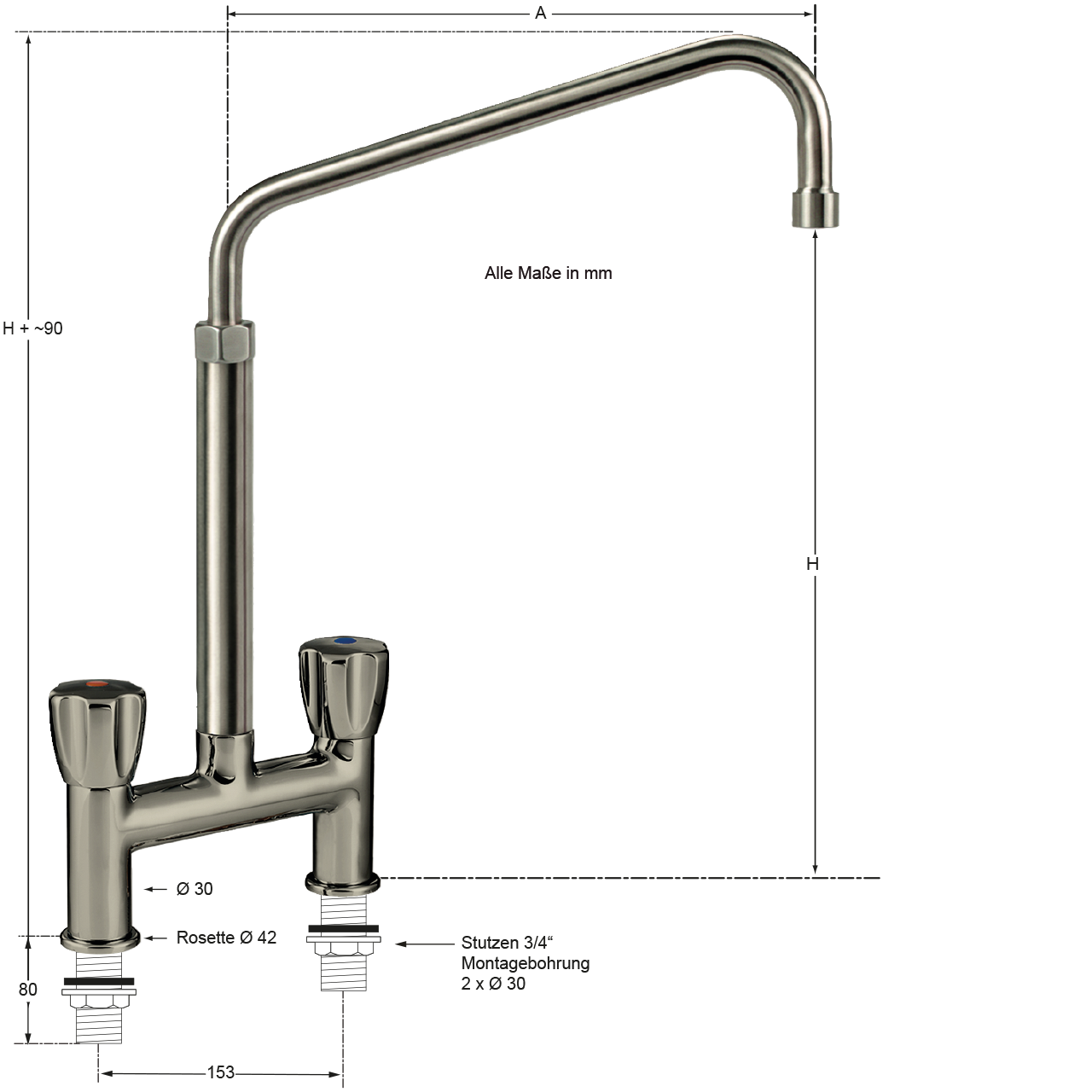 | Montagebohrung: | Abstand 153 mm - 2x Ø 30 mm |