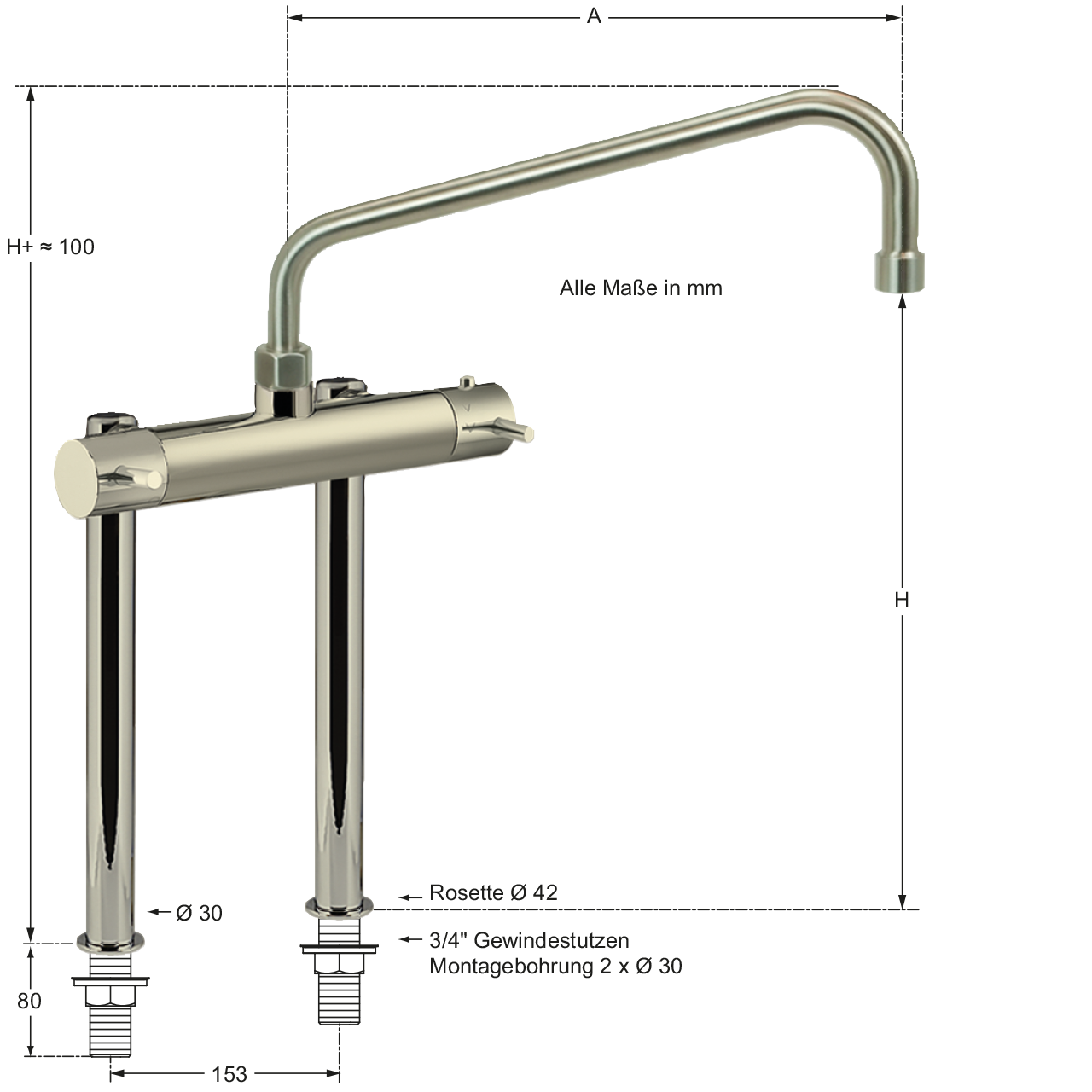 | Montagebohrung: | Abstand 153 mm - 2x Ø 30 mm |