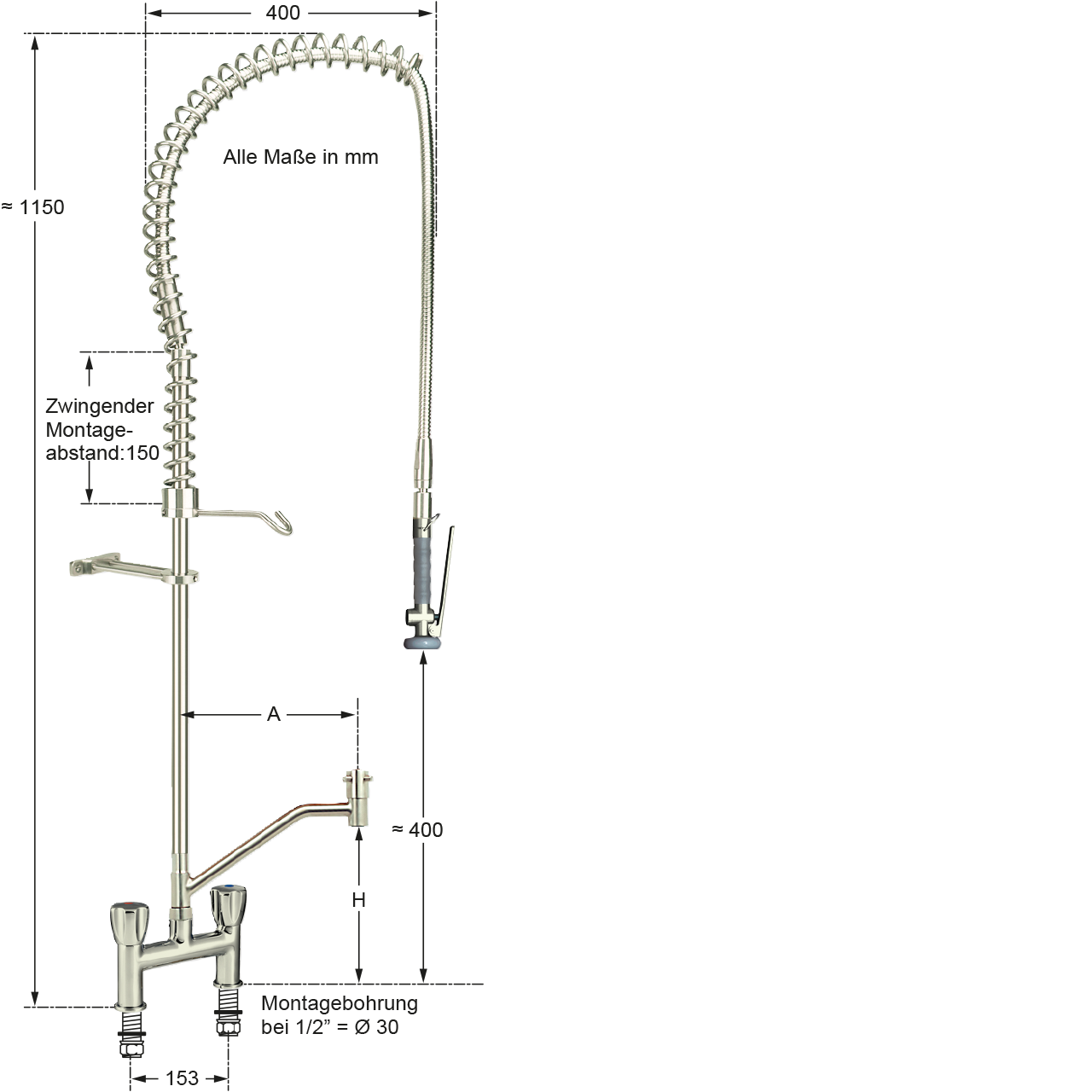 Montagebohrung: Abstand 153 mm - 2x Ø 30 mm