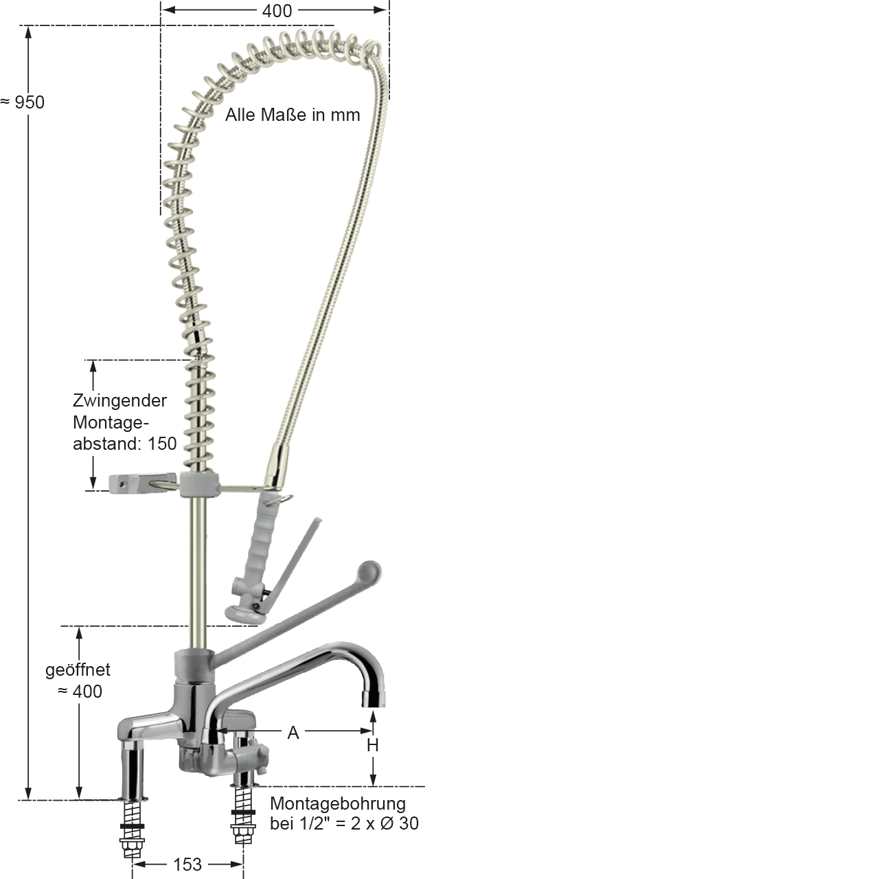 | Montagebohrung: | Abstand 153 mm - 2x Ø 30 mm |