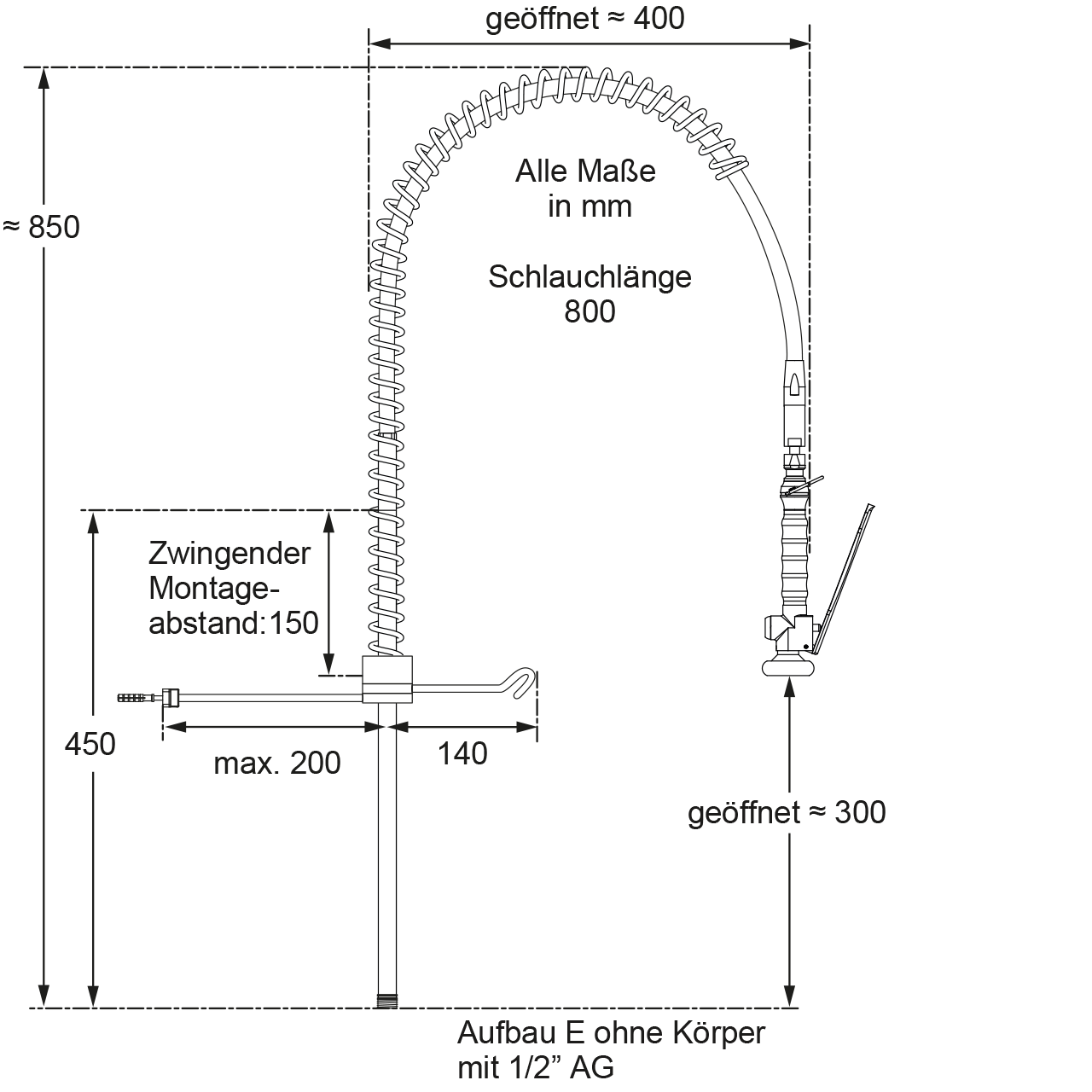 - rückschlagfreie Selbstschlussbrause mit Handgriff