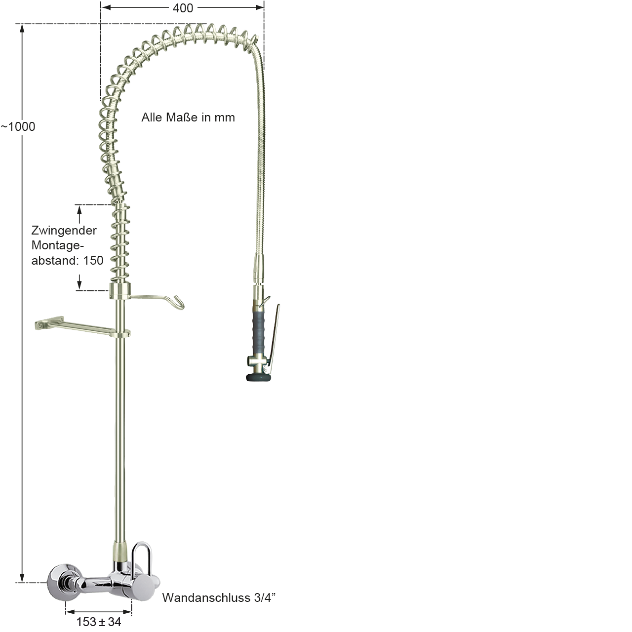 • rückschlagfreie Selbstschlussbrause mit Handgriff