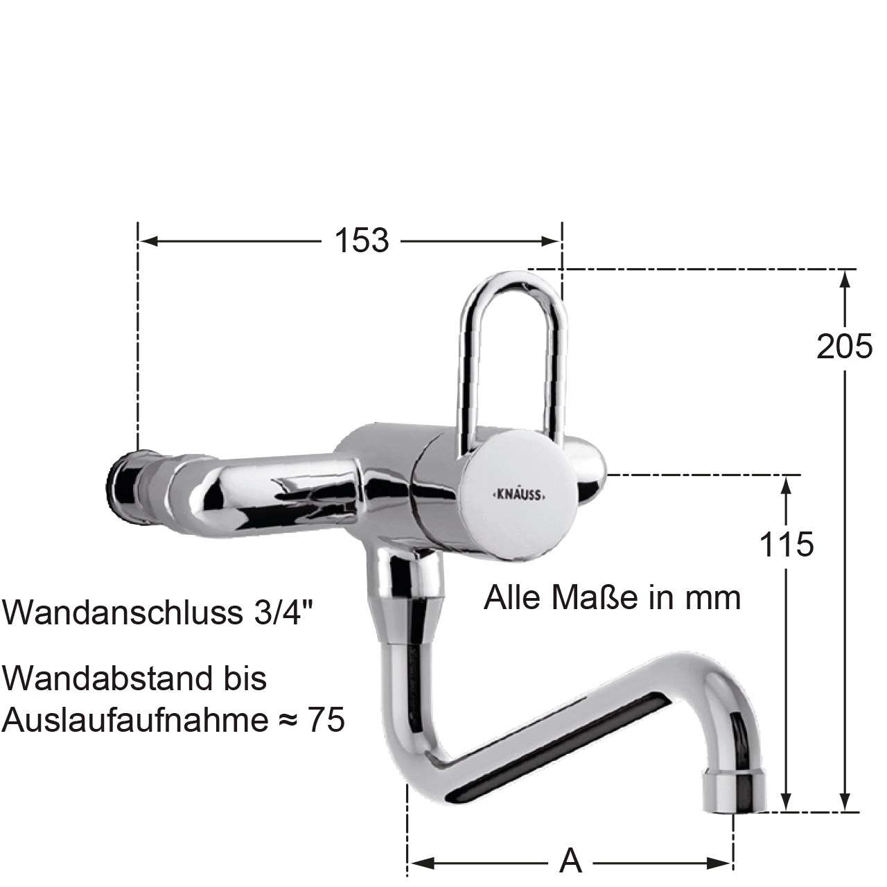 - Anschlussdistanz 153 mm mit 3/4" Überwurfmutter für Kochbrücken