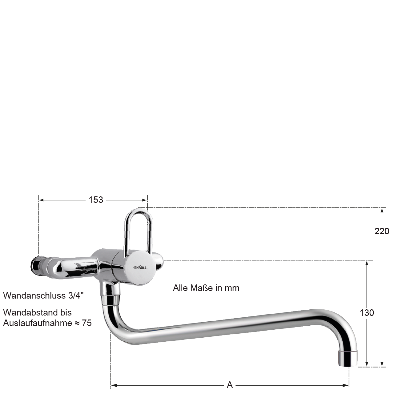 - Anschlussdistanz 153 mm mit 3/4" Überwurfmutter für Kochbrücken