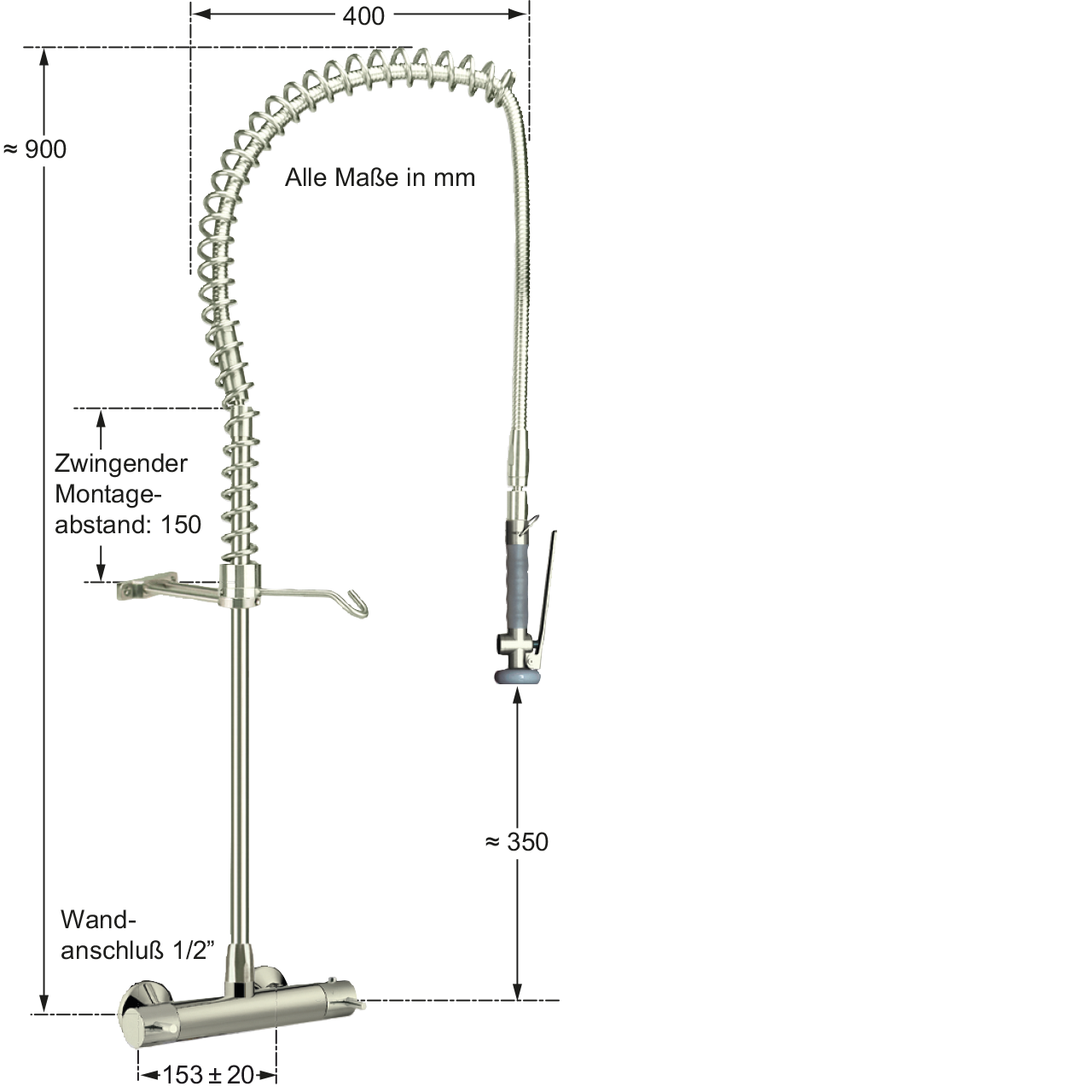 • rückschlagfreie Selbstschlussbrause mit Handgriff