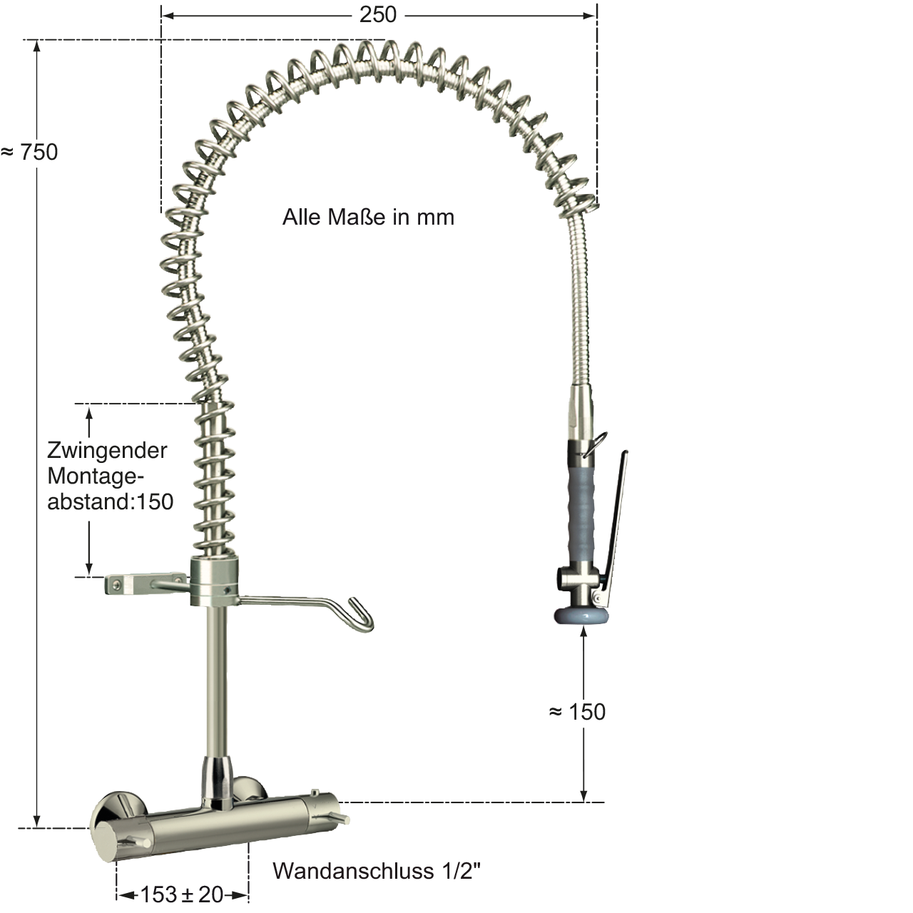 | Montagebohrung: | Abstand 153 ± 20 mm |