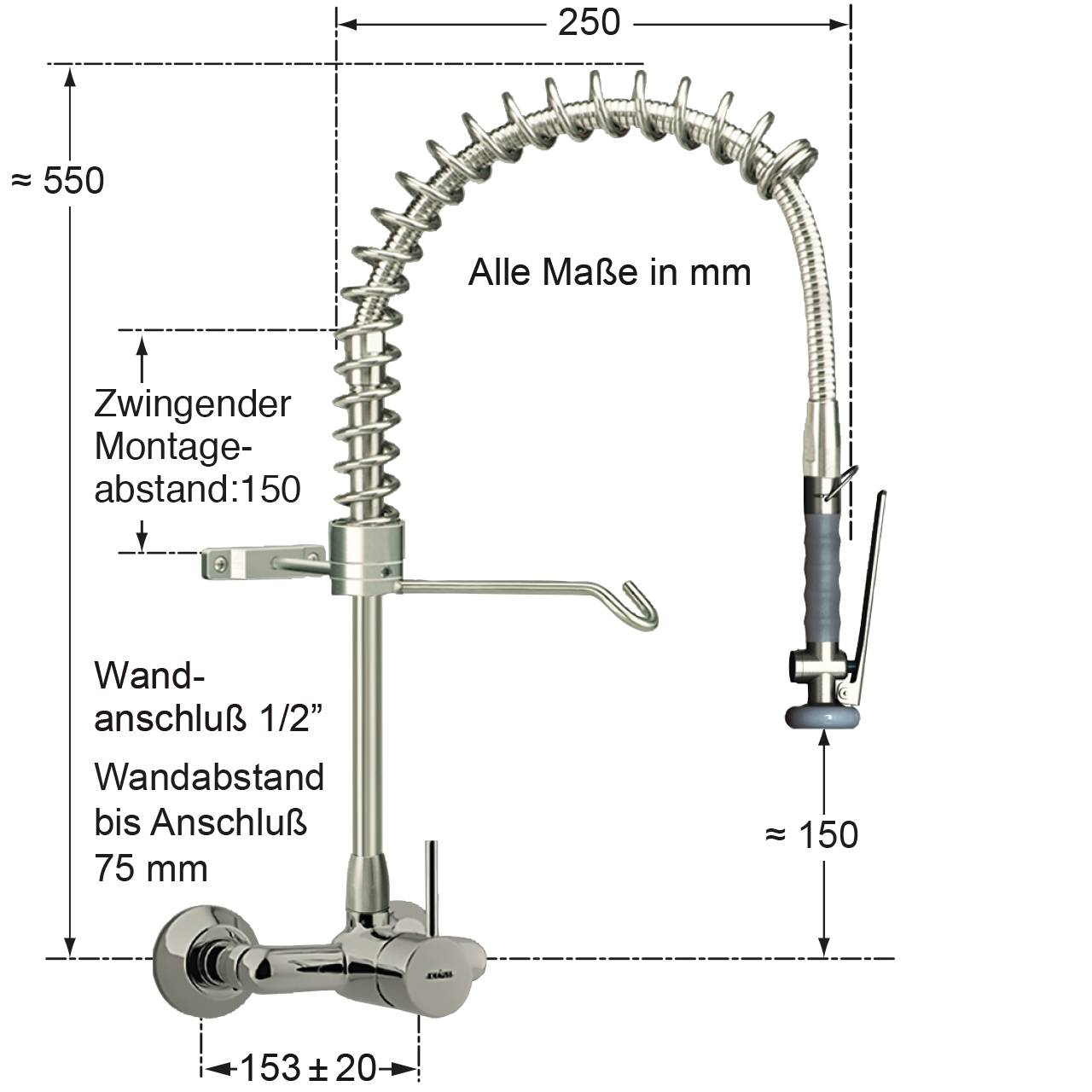 | Montagebohrung: | Abstand 153 ± 20 mm |