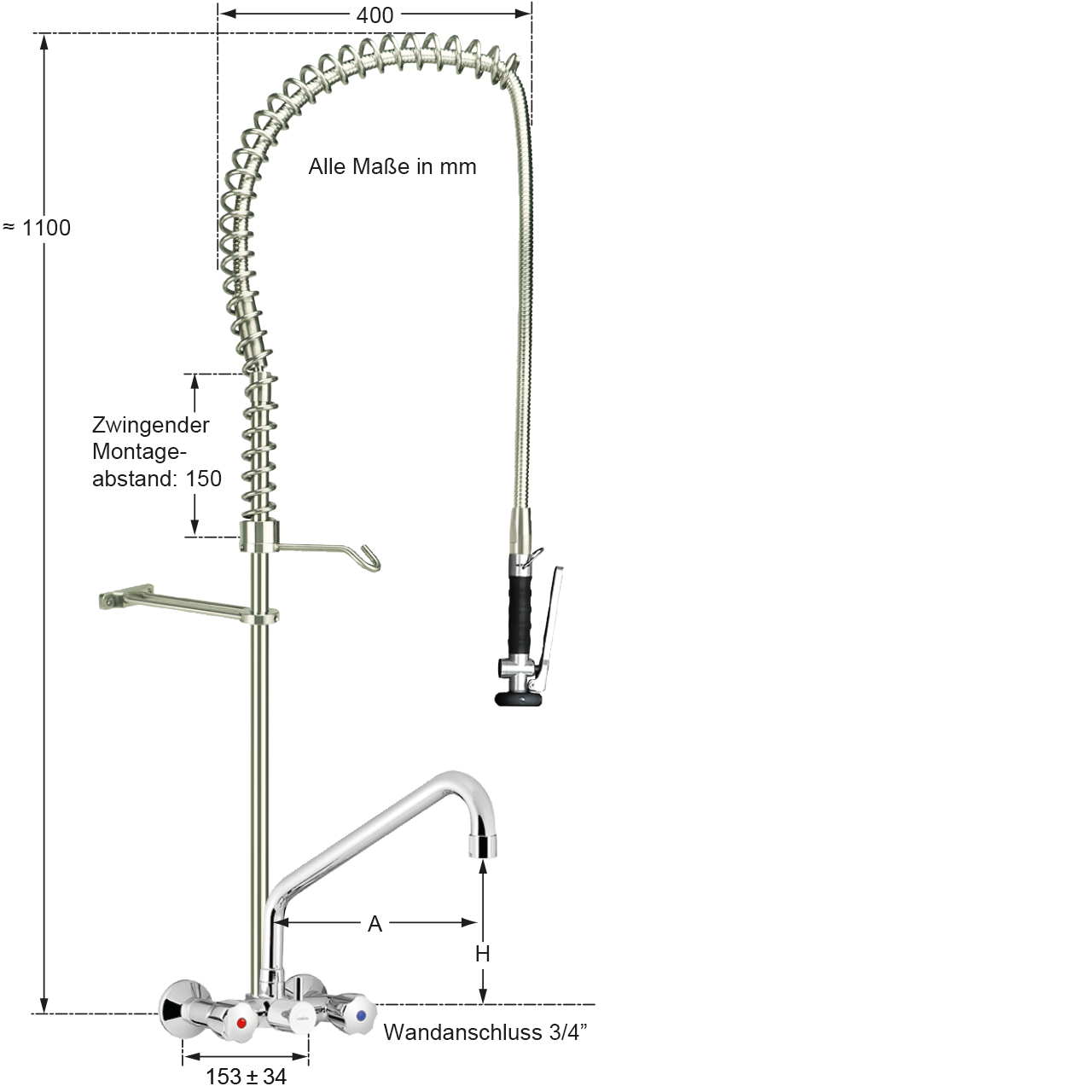 | Montagebohrung: | Abstand 153 ± 20 mm |
