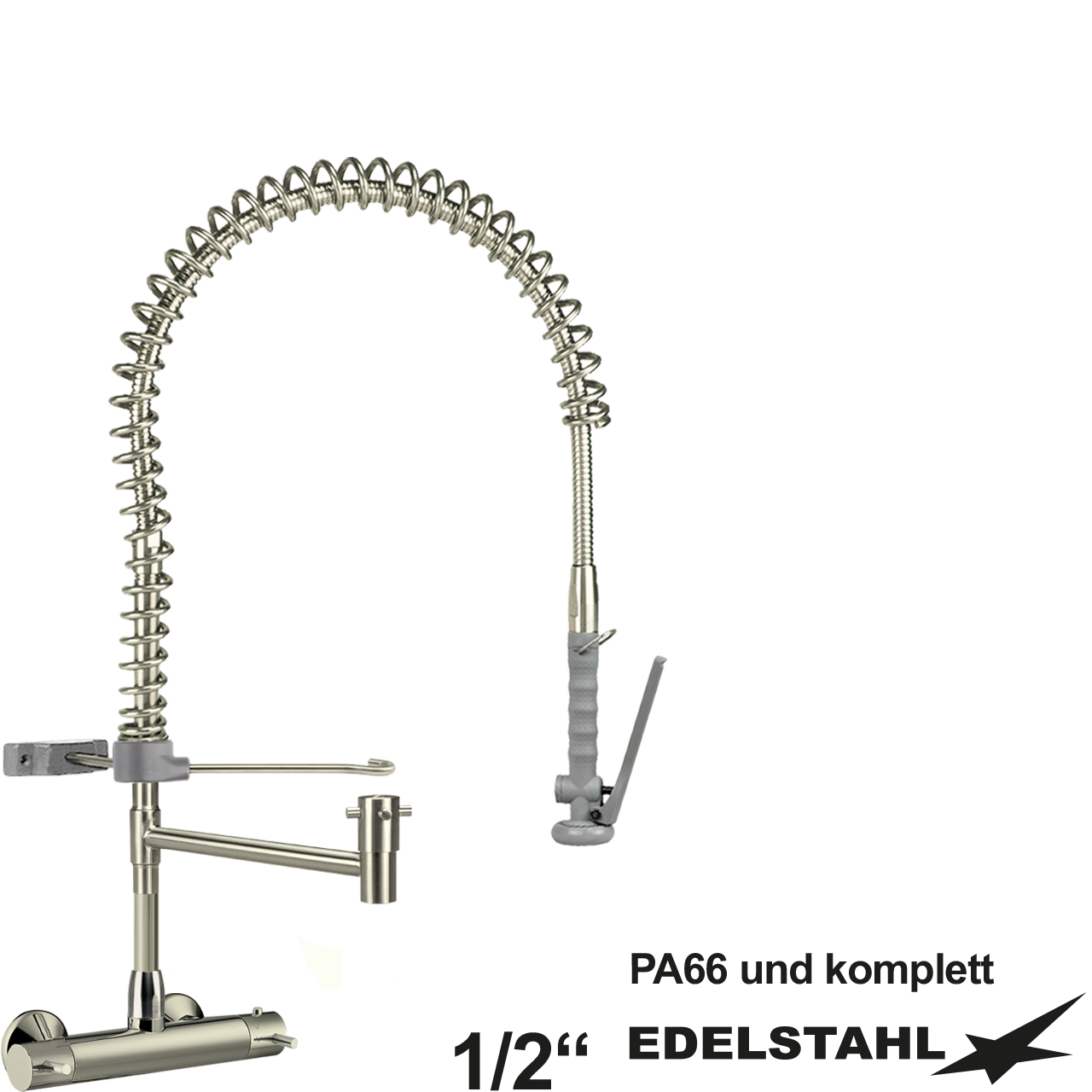- Thermostat, Standrohr, Standrohrhalter, Brauseeinhängehaken, Federhalter, Tragfeder, Gelenkadapter aus poliertem Edelstahl
