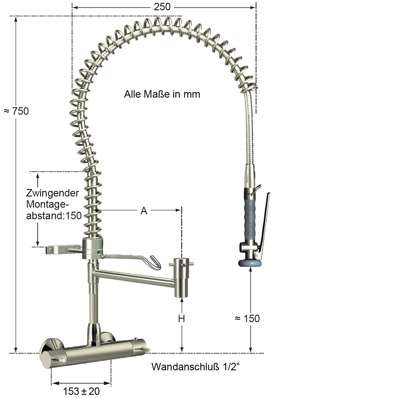 | Montagebohrung: | Abstand 153 ± 20 mm |