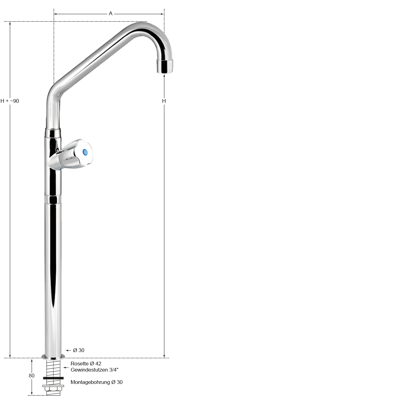 - Schweres Modell mit Schwenkauslauf Ø 30 mm