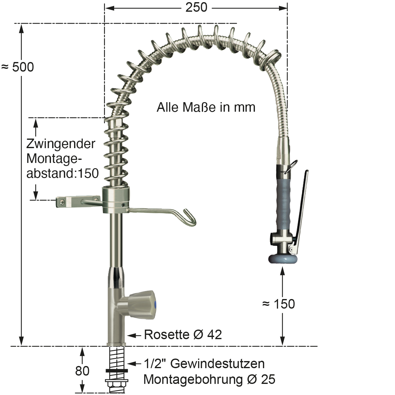 - rückschlagfreie Selbstschlussbrause mit Handgriff