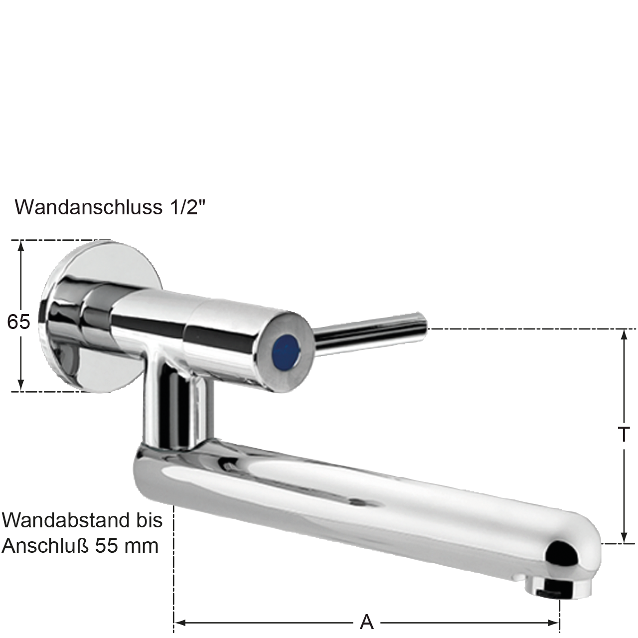 - Mit Rohrform-Schwenkauslauf Ø 30 mm unten