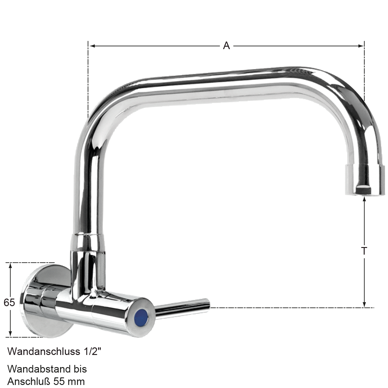 - Mit Rohrform-Schwenkauslauf Ø 25 mm oben