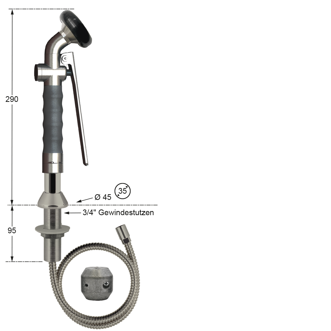 - 3/4" Gewindestutzen - Lochbohrung Ø 35 mm