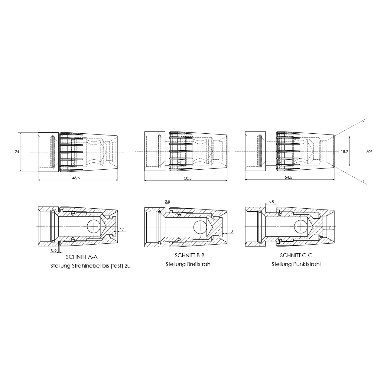 - Mit verstellbarer Strahldüse aus Ganzmetall