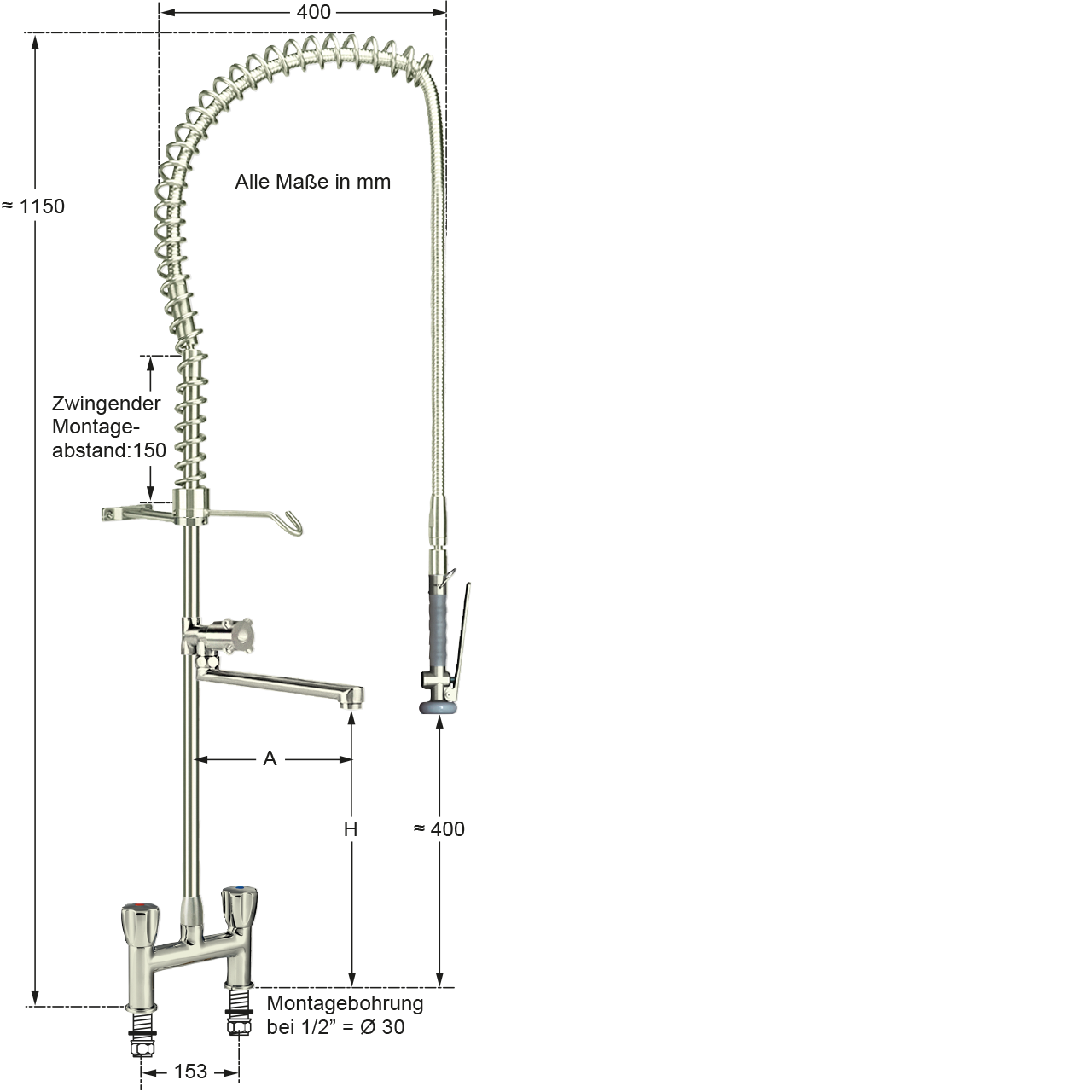 | Montagebohrung: | Abstand 153 mm - 2x Ø 30 mm |