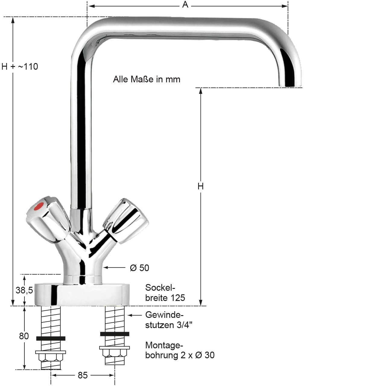 | Montagebohrung: | Abstand 85 mm - 2x Ø 30 mm |