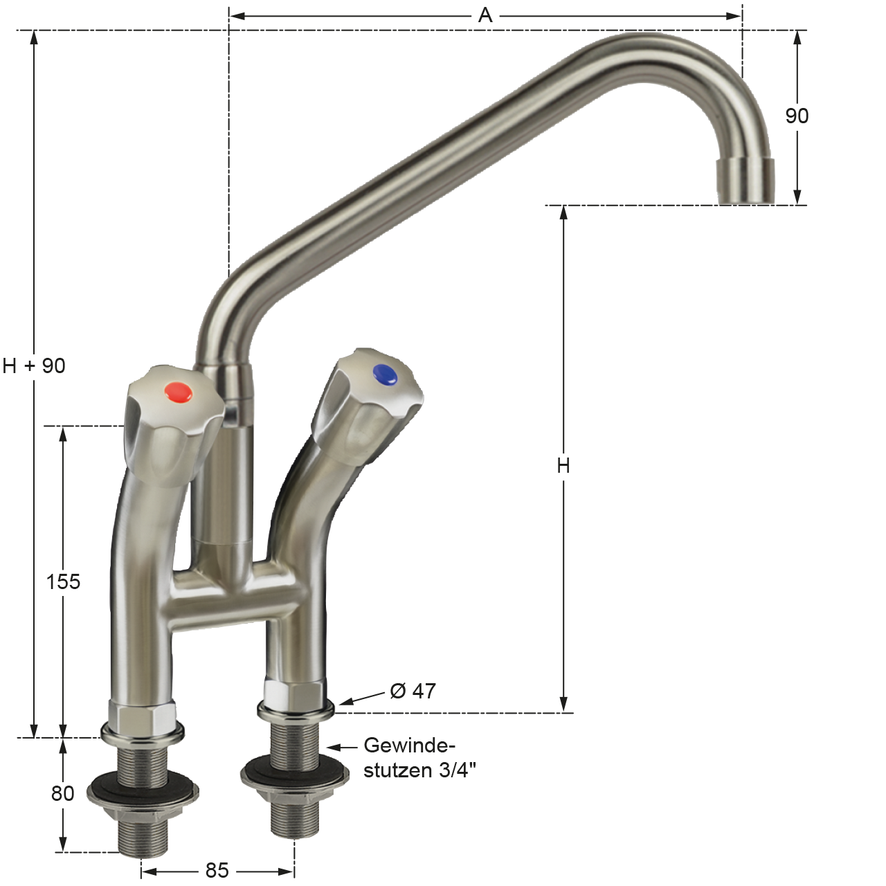 | Montagebohrung: | Abstand 85 mm - 2x Ø 30 mm |
