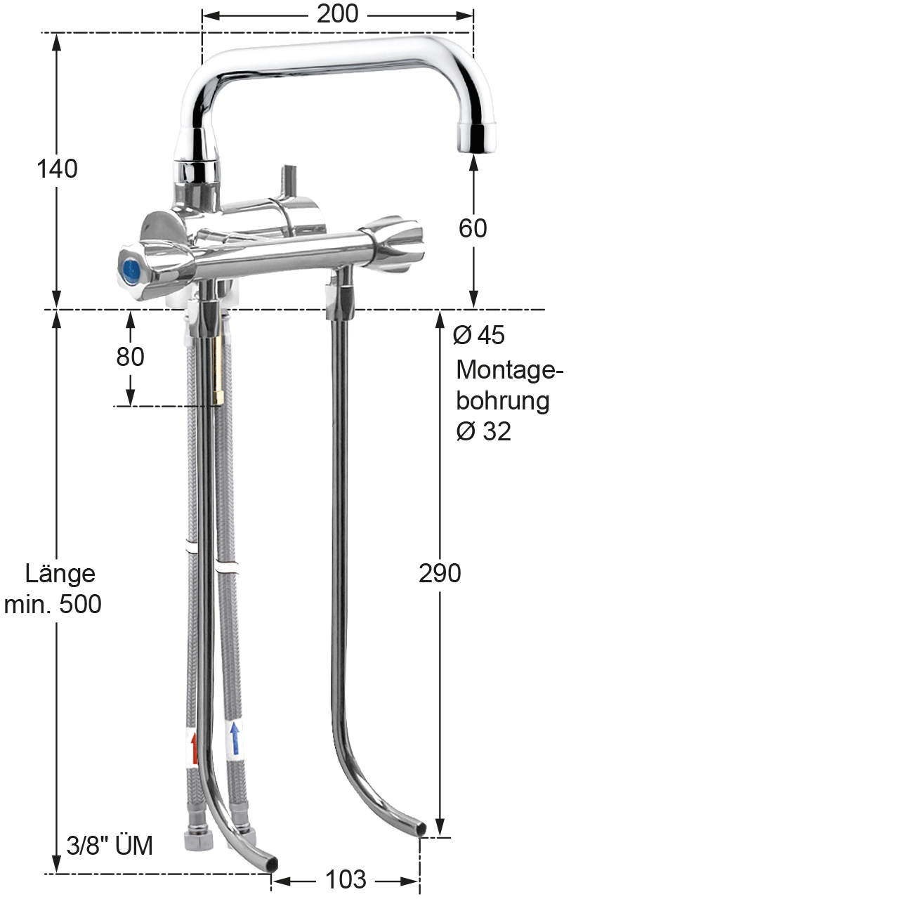 - Ventilabgang mit Fettkammeroberteil 3/8" und Unterspülrohr L < 290 mm für Kaltwasser