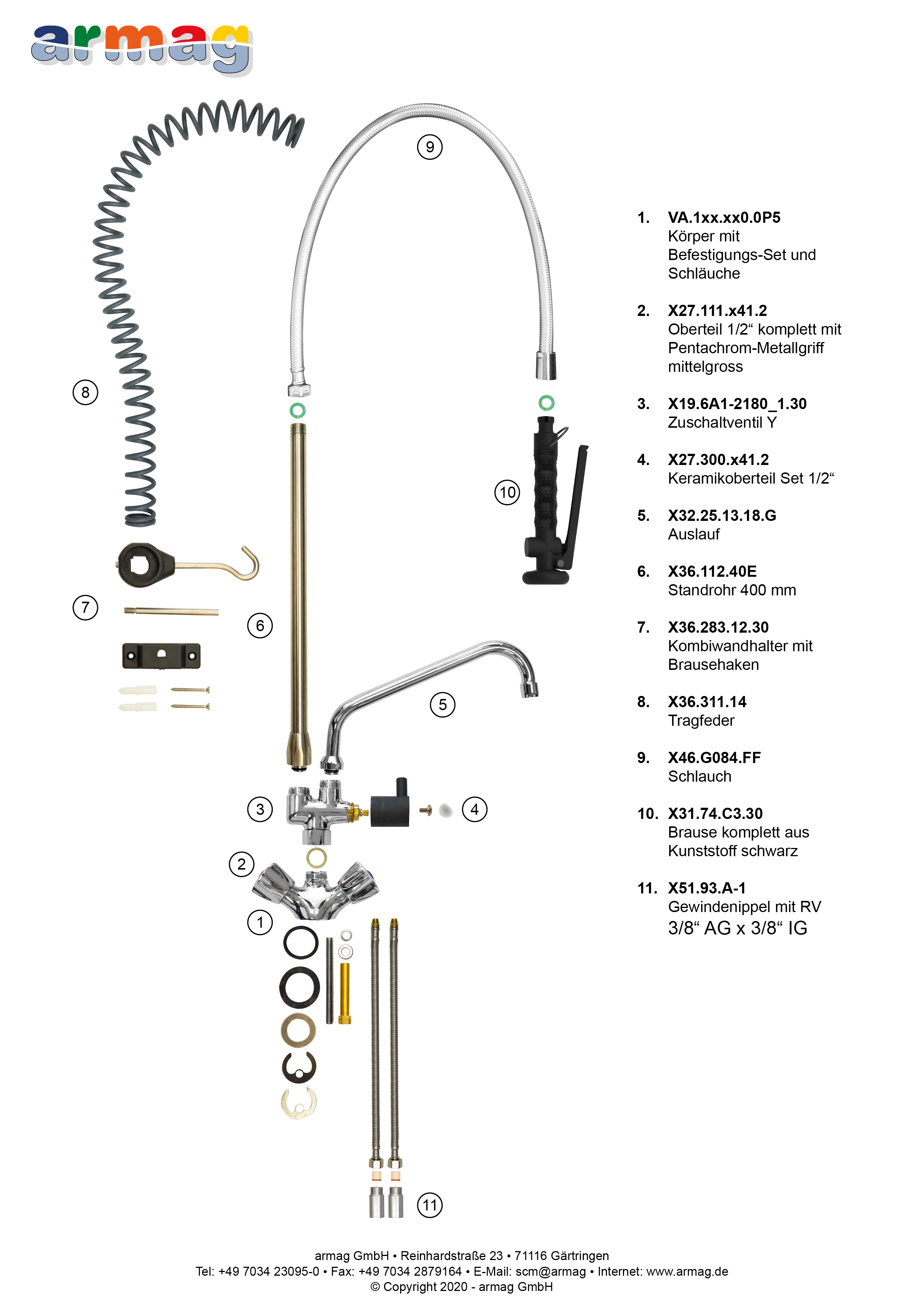 - Standrohr, Standrohrhalter, Brauseeinhängehaken, Federhalter, Tragfeder aus Edelstahl kombiniert mit PA66