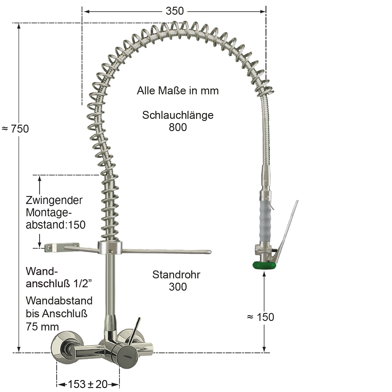 | Montagebohrung: | Abstand 153 ± 20 mm |