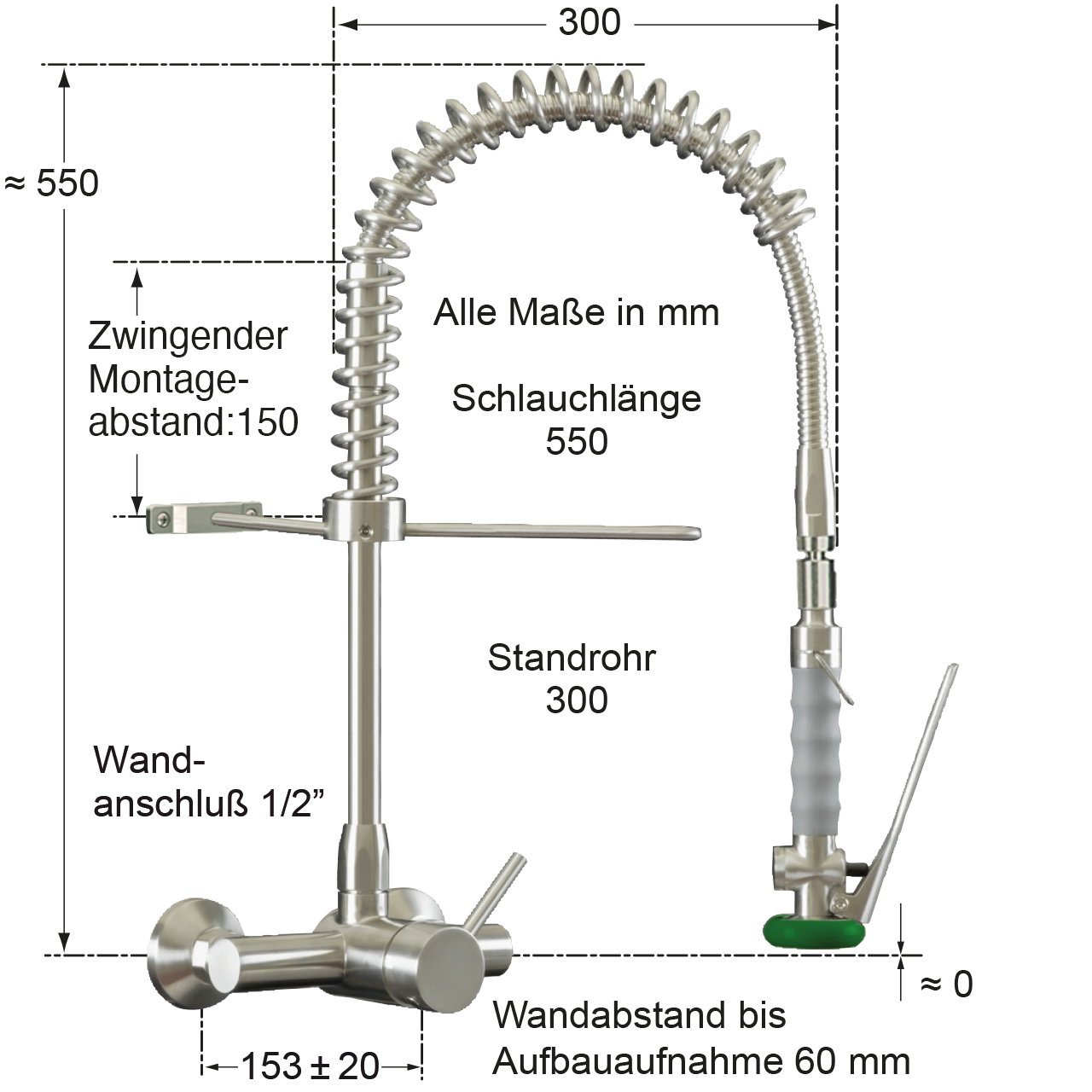| Montagebohrung: | Abstand 153 ± 20 mm |