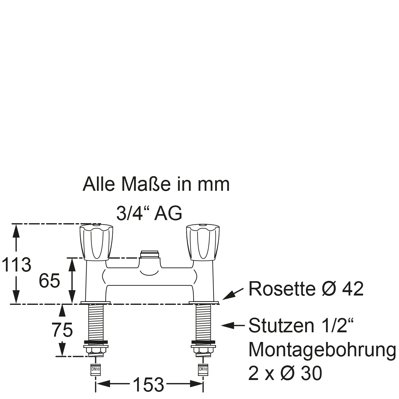 - Gewindestutzen L 80 mm, Anschlussdistanz 153 mm