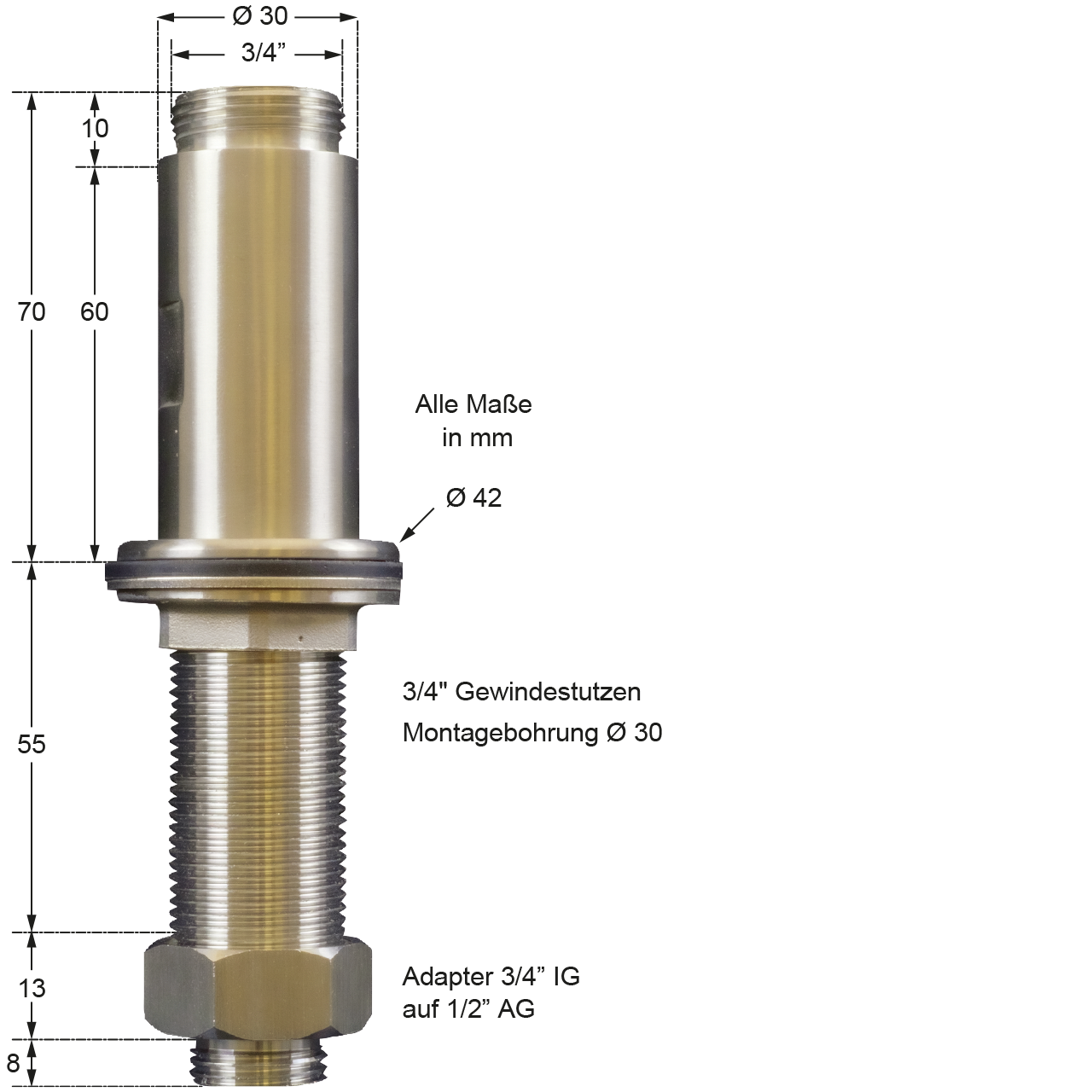 Produktinformationen "classic Tischsockel 3/4" Anschluss 1/2""