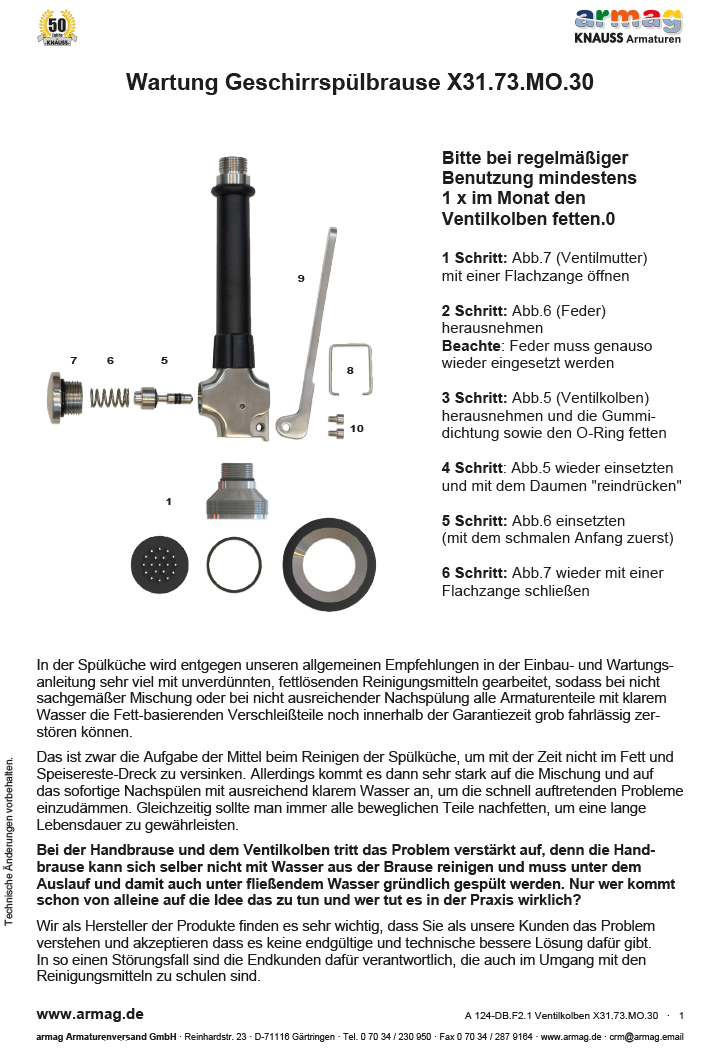 - Geschirrspül-Handbrause 1/2" Edelstahl und rückschlagfrei